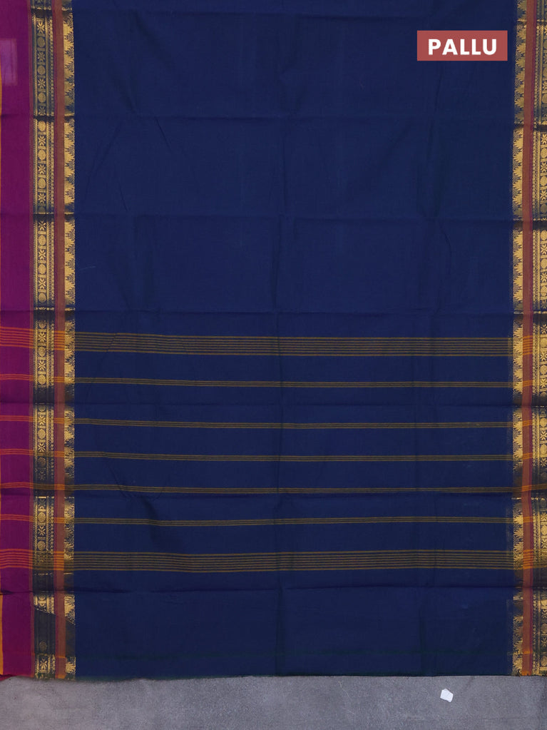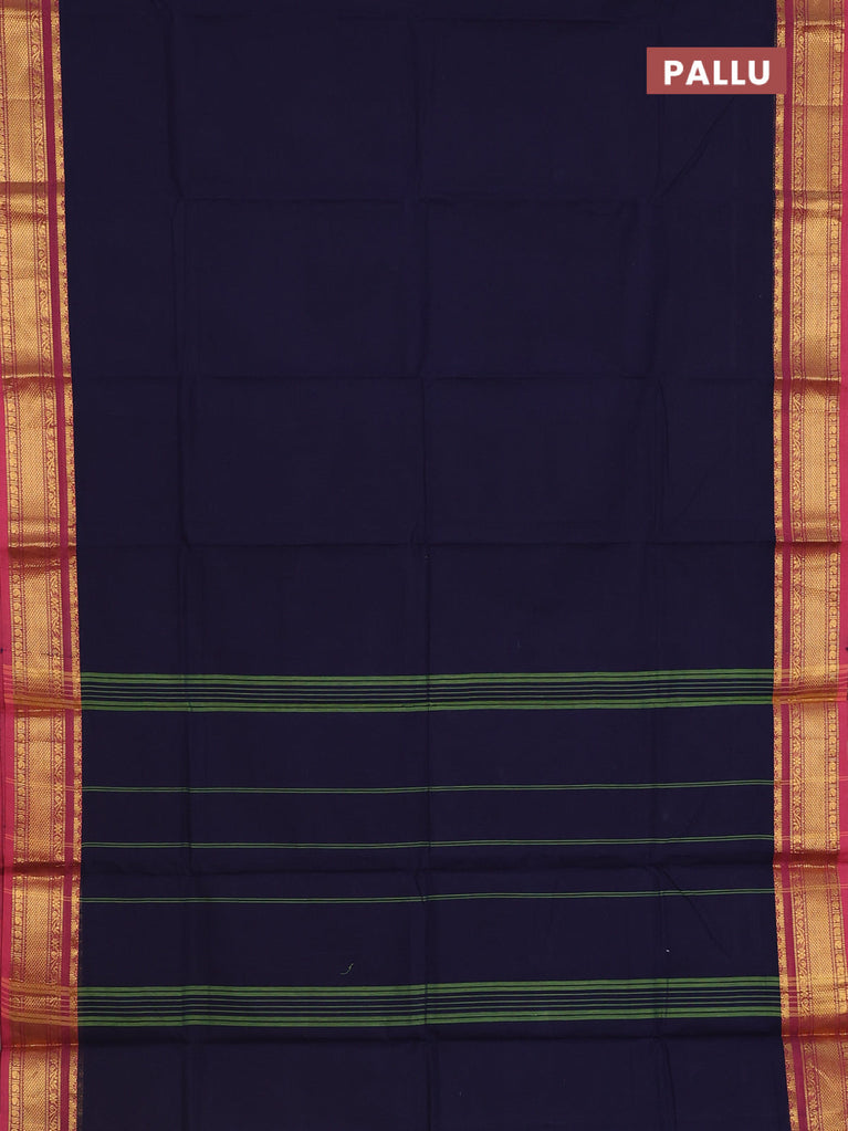 Chettinad cotton saree navy blue and pink with plain body and zari woven border