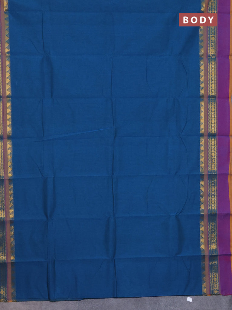 Chettinad cotton saree peacock blue and violet with thread woven buttas and ganga jamuna border
