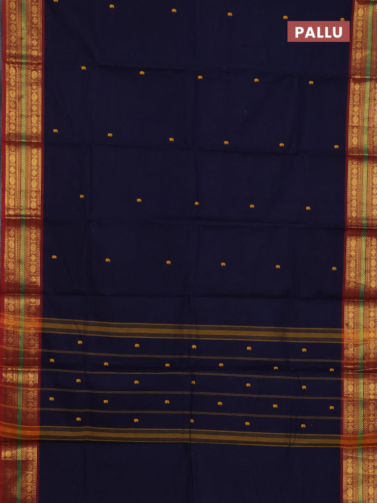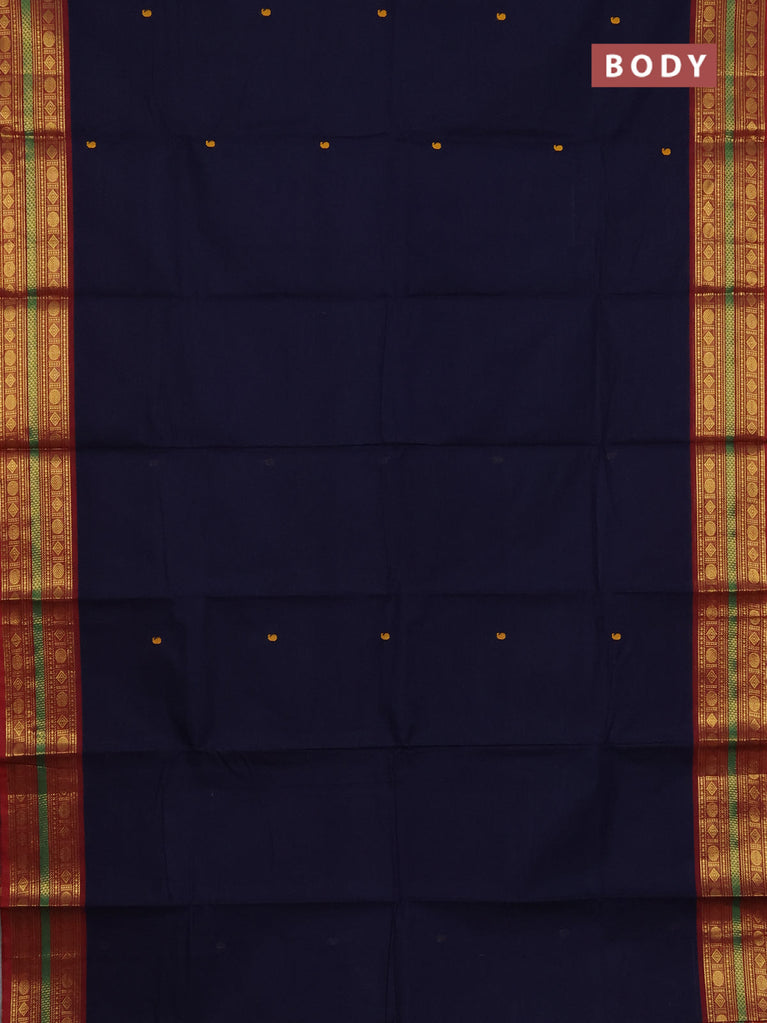 Chettinad cotton saree navy blue and maroon with thread woven buttas and zari woven annam butta border