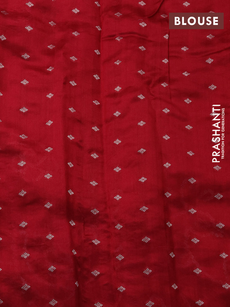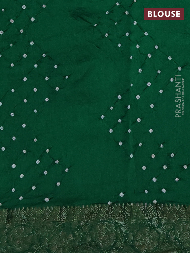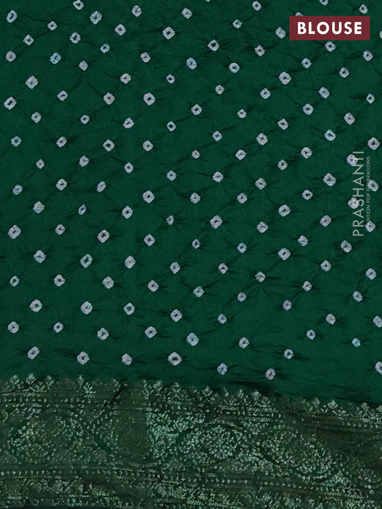 Chiniya silk saree magenta pink and military green with allover zari buttas & bandhini prints and zari woven border
