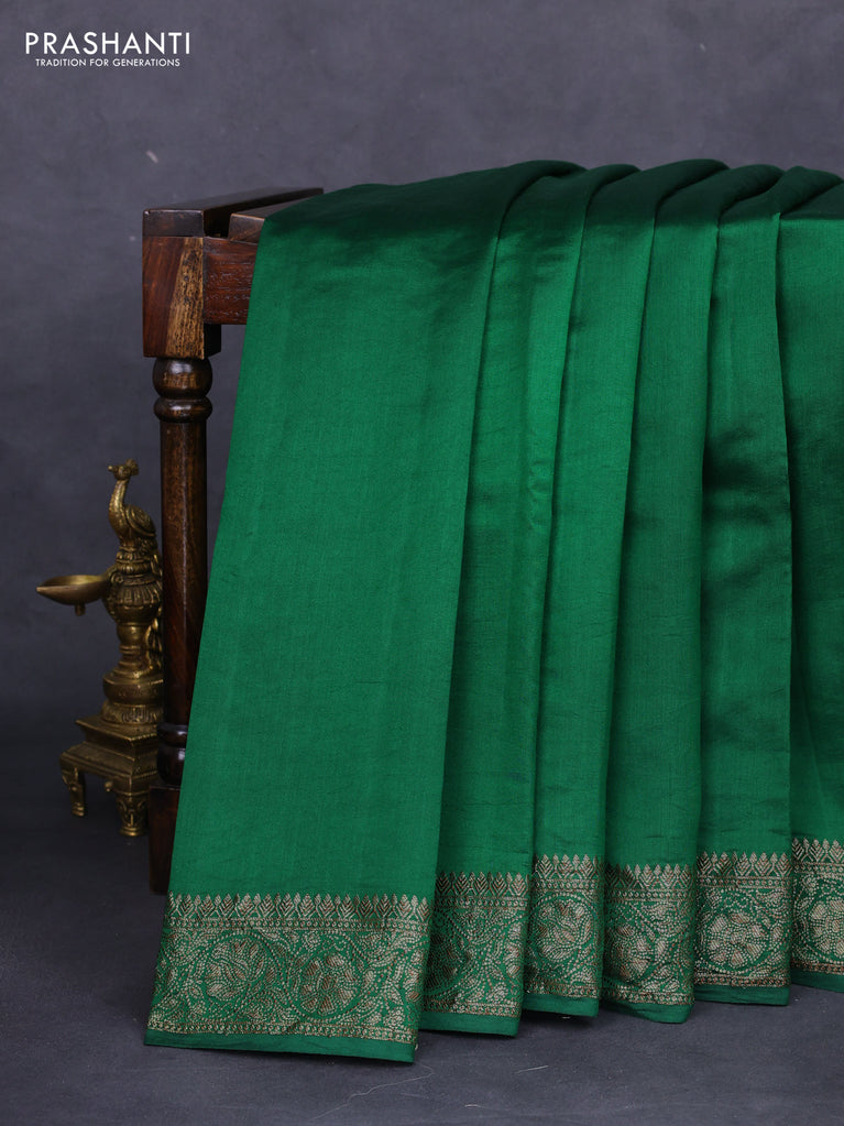 Chiniya silk saree green with zari woven floral buttas and zari woven border