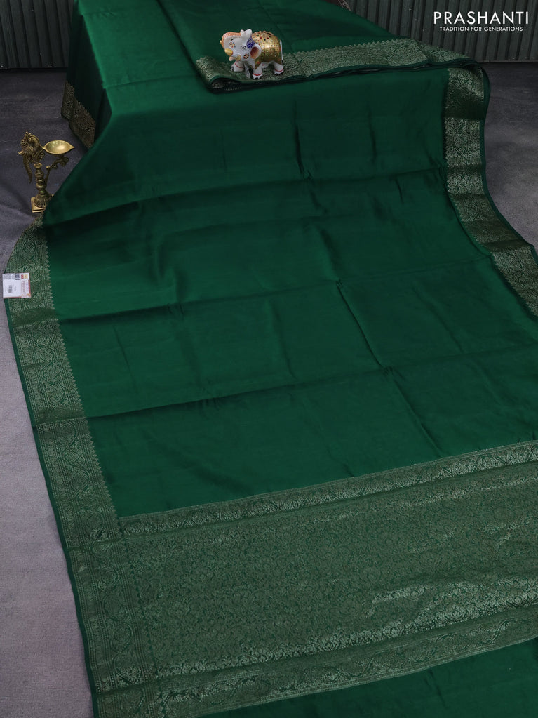 Chiniya silk saree green with allover zari weaves and zari woven simple border
