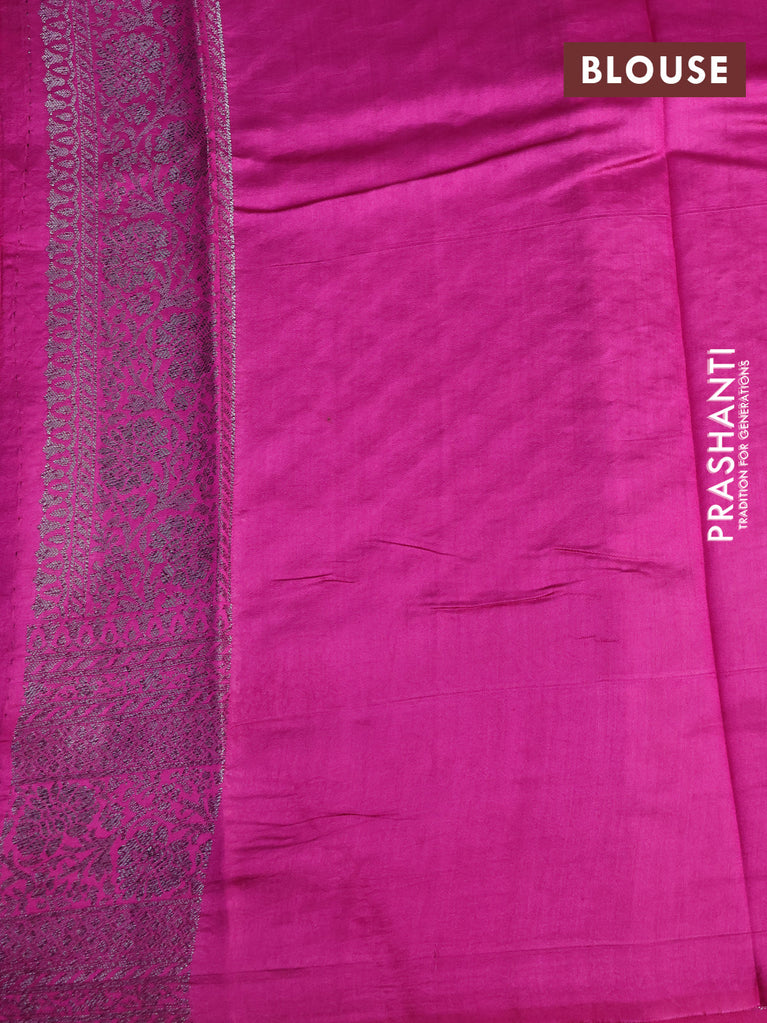 Chiniya silk saree magenta pink and black with plain body and woven border