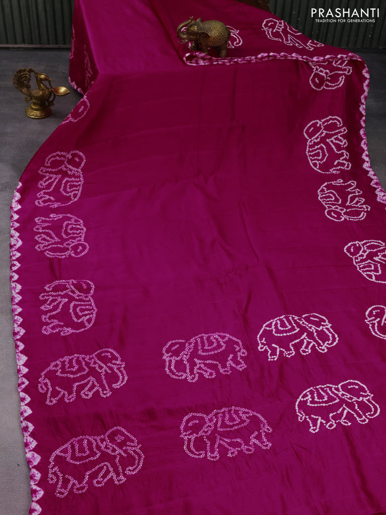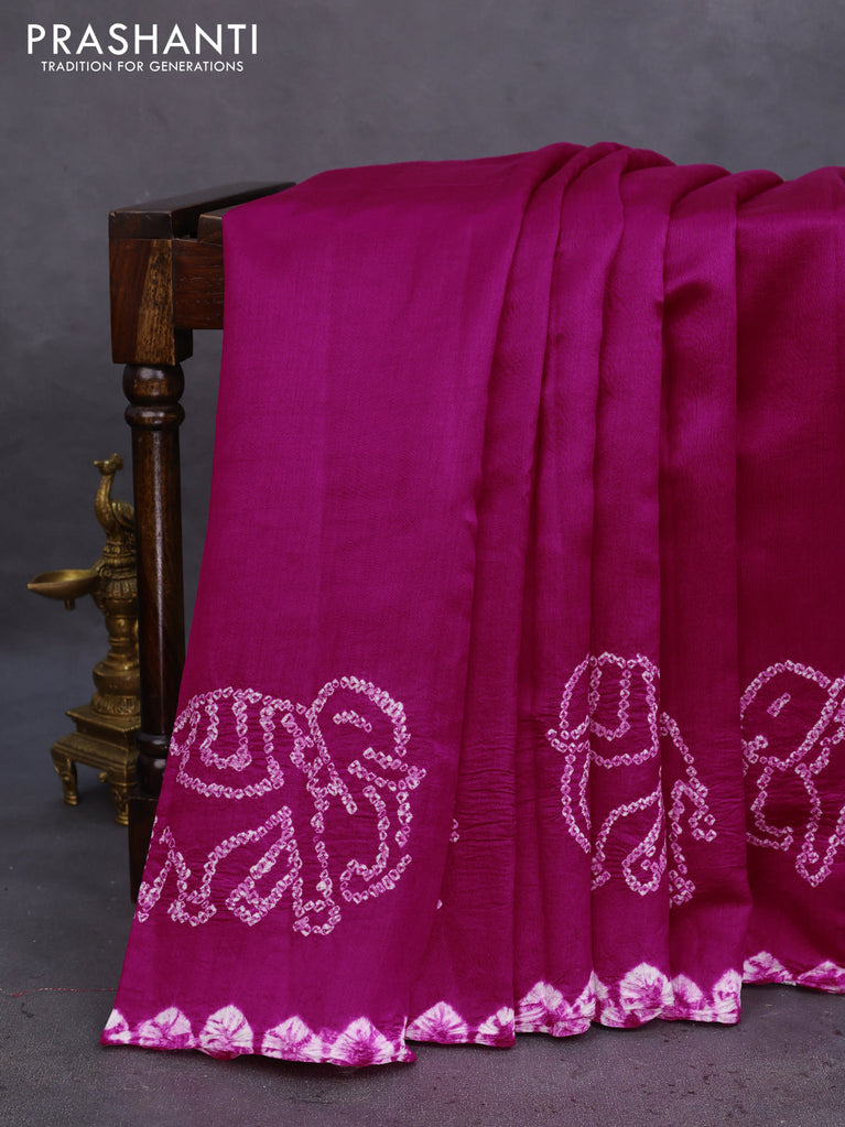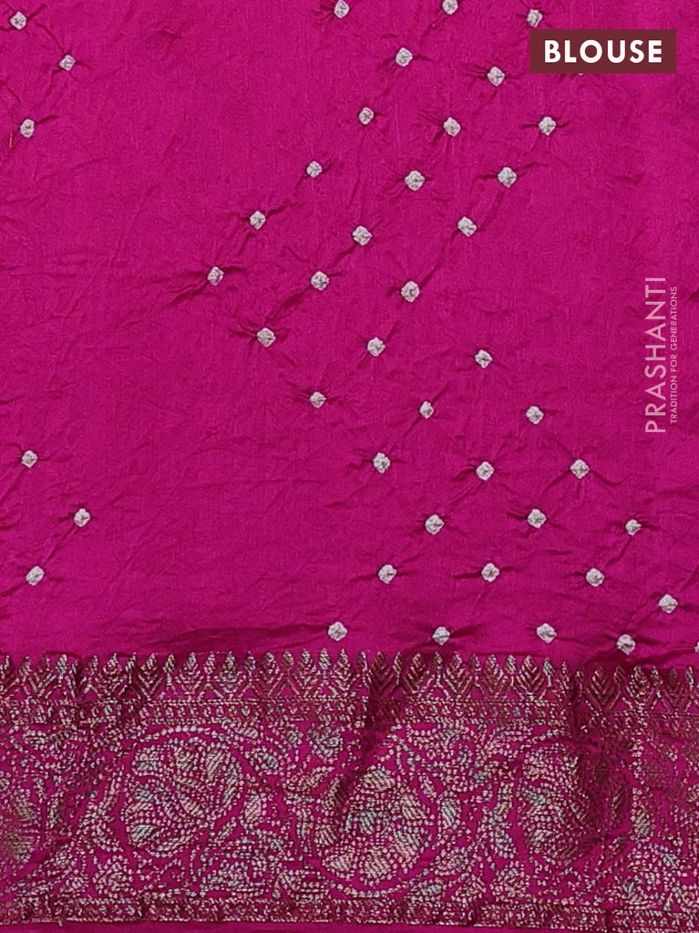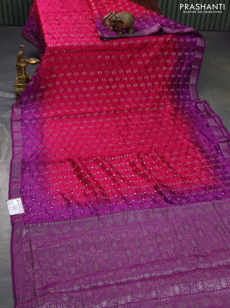 Chiniya silk saree pink and purple with allover bandhani prints & zari weaves and zari woven border