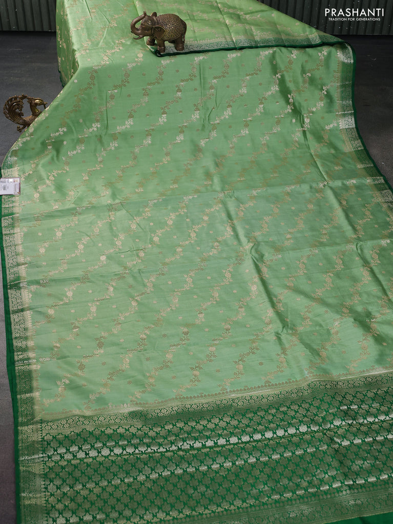 Chiniya silk saree pista green and green with allover zari weaves and zari woven border