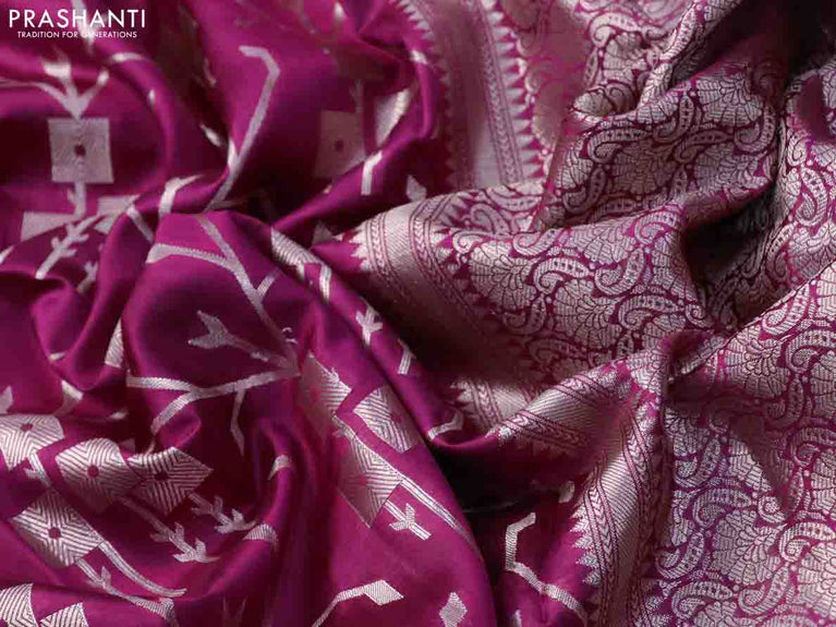 Chiniya silk saree pink with allover silver zari weaves and zari woven simple border
