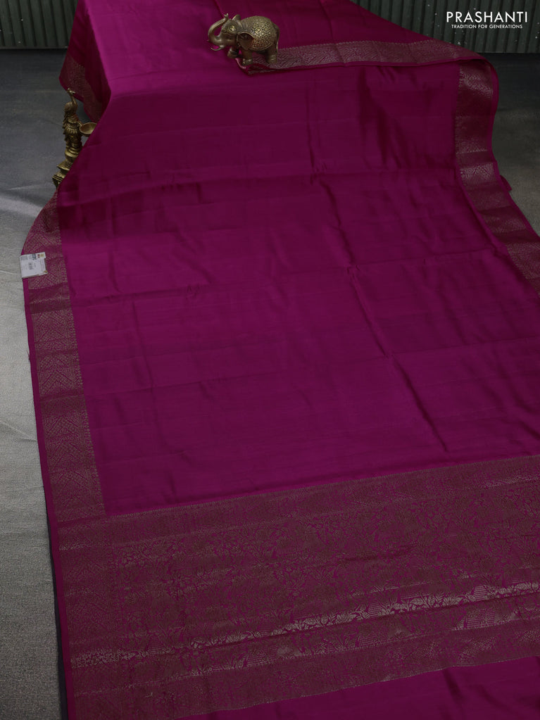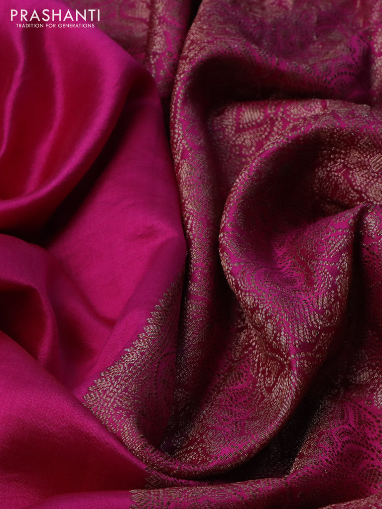 Chiniya silk saree pink and deep jamun with plain body and woven border