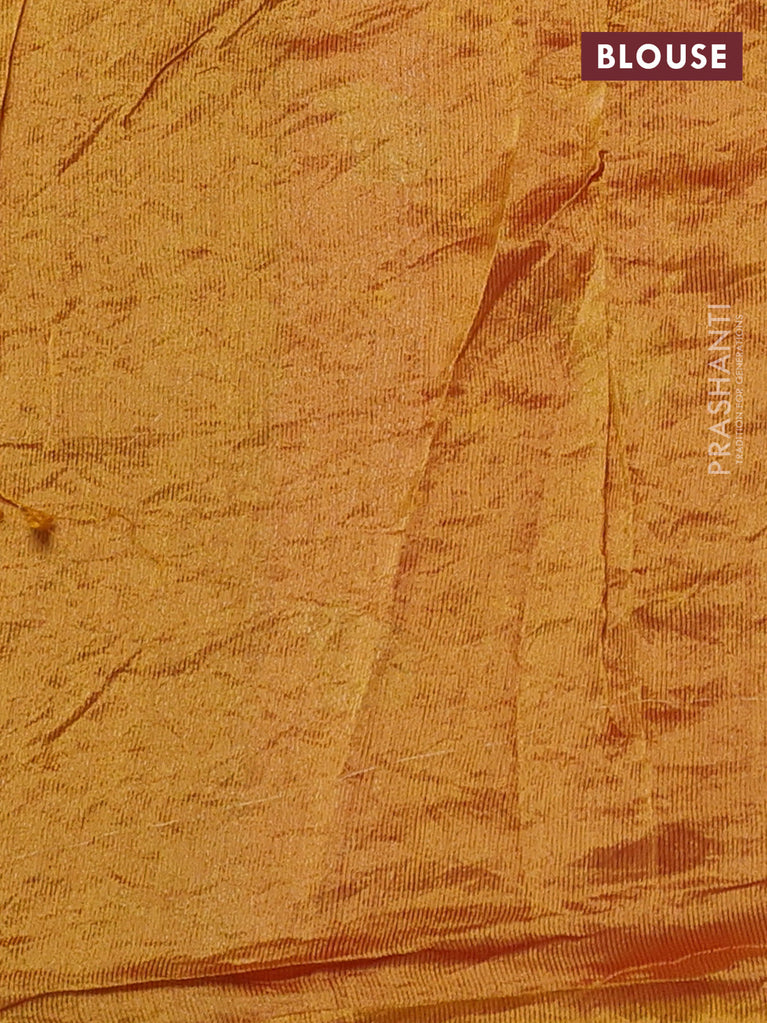 Chiniya silk saree pink and mustard yellow with allover zari buttas & bandhini prints in borderless style