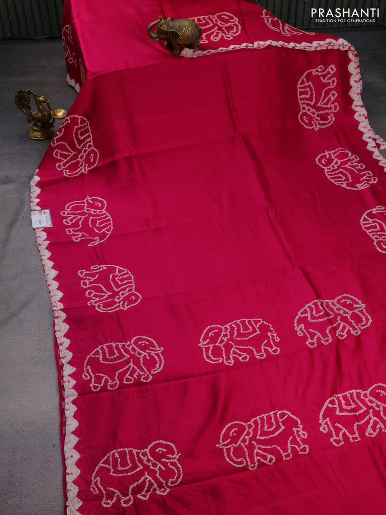Chiniya silk saree pink with allover bandhani prints