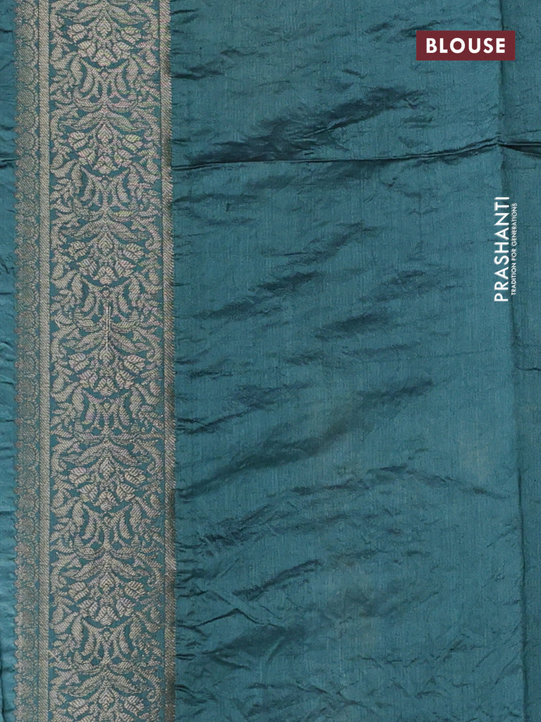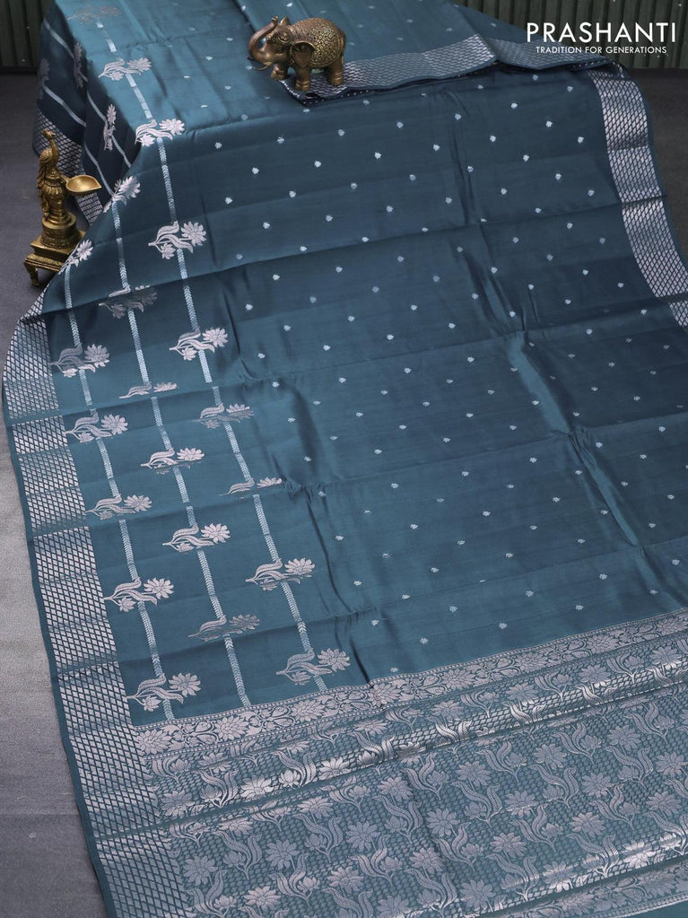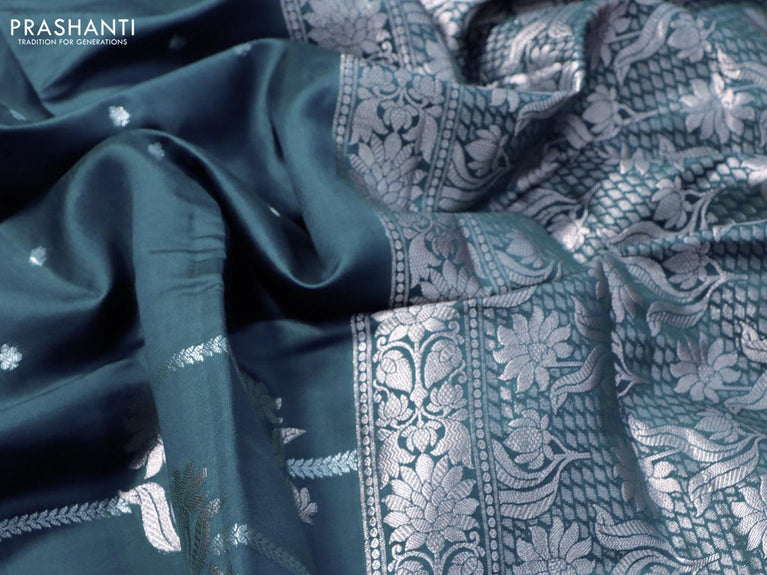Chiniya silk saree peacock blue with allover zari weaves & buttas in borderless style