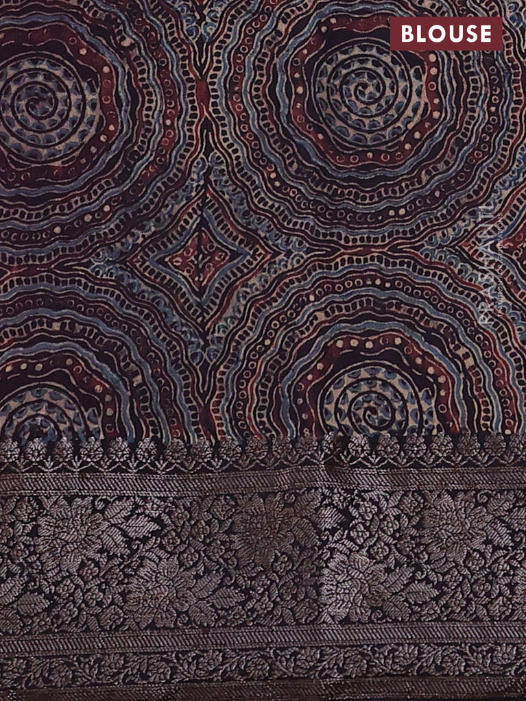 Chiniya silk saree pastel blue and pastel maroon with woven buttas & digital prints and zari woven border