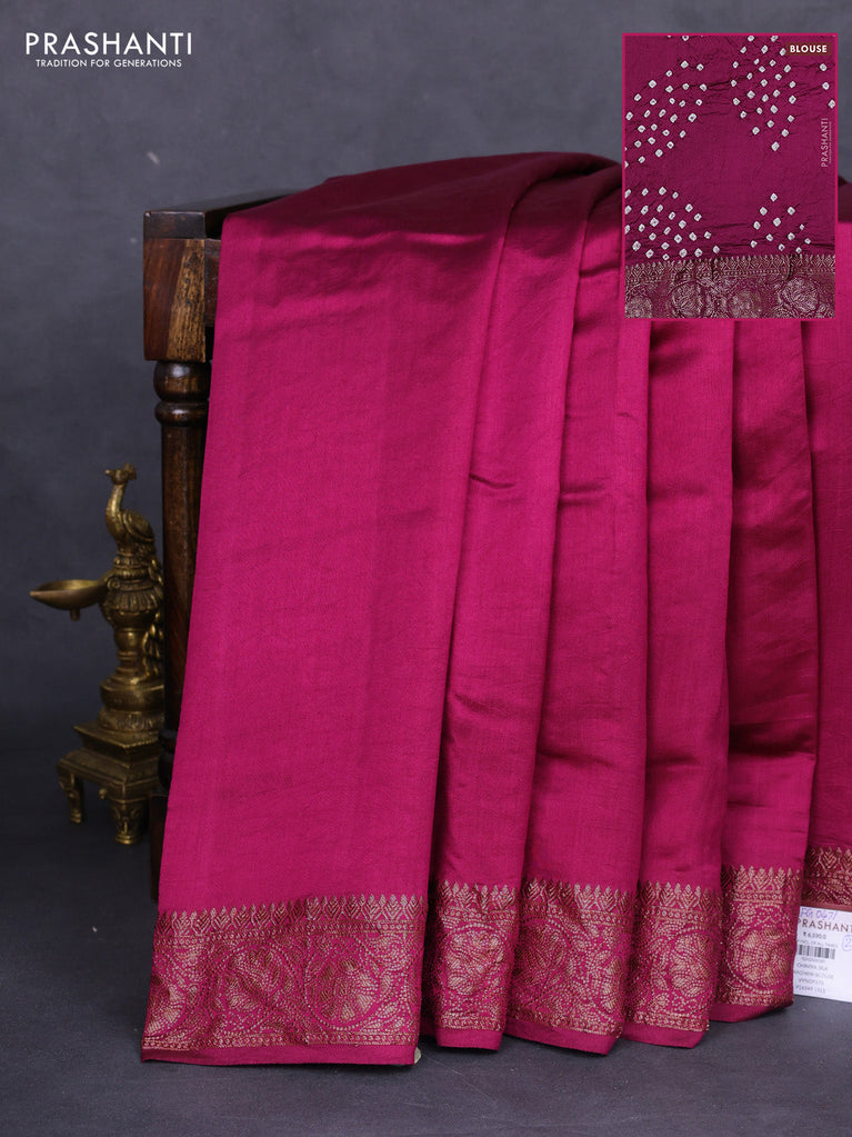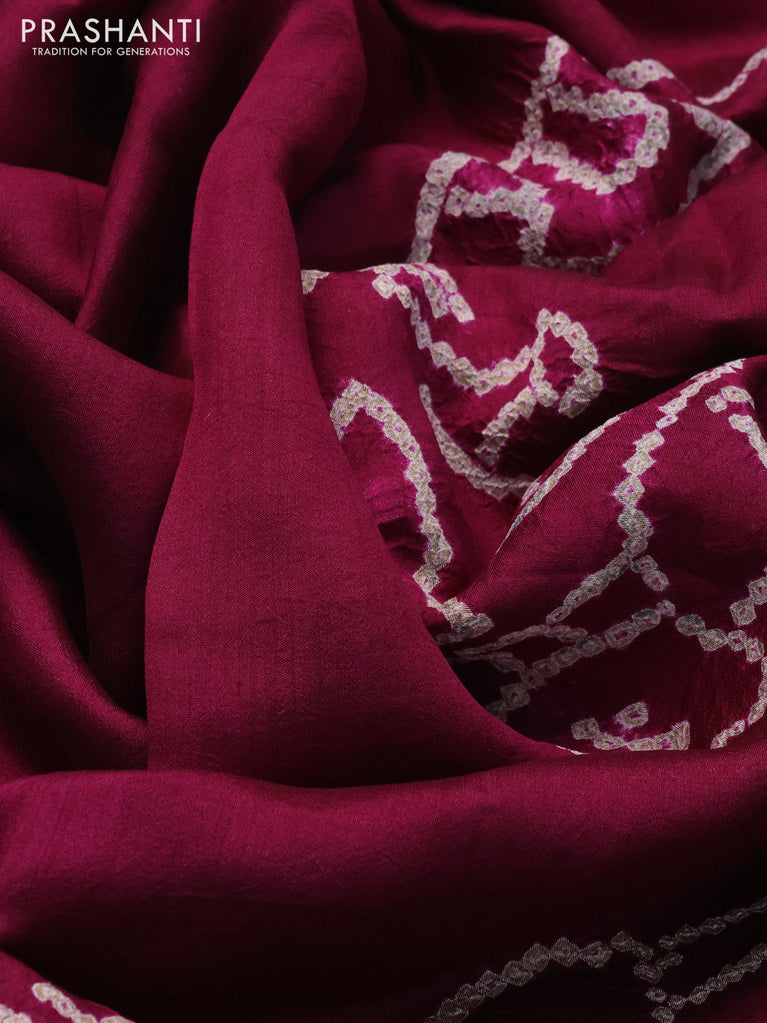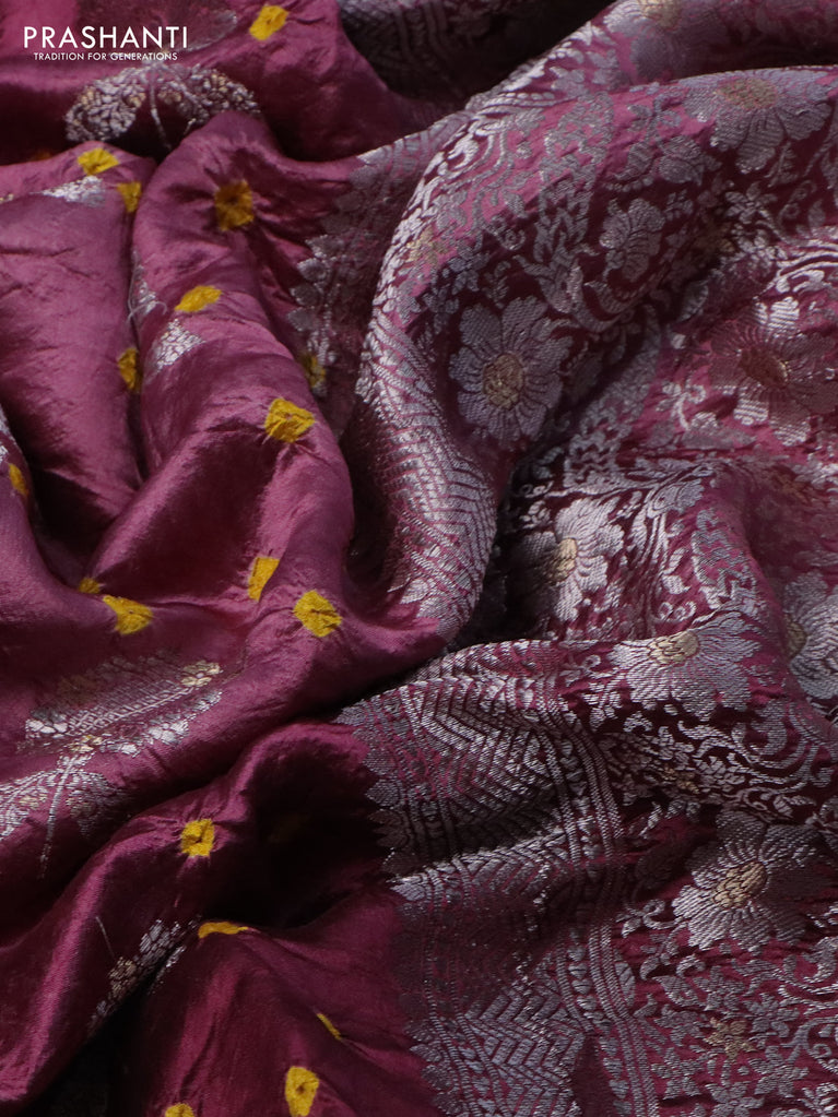 Chiniya silk saree wine shade with allover silver zari buttas & bandhini prints and silver zari woven border