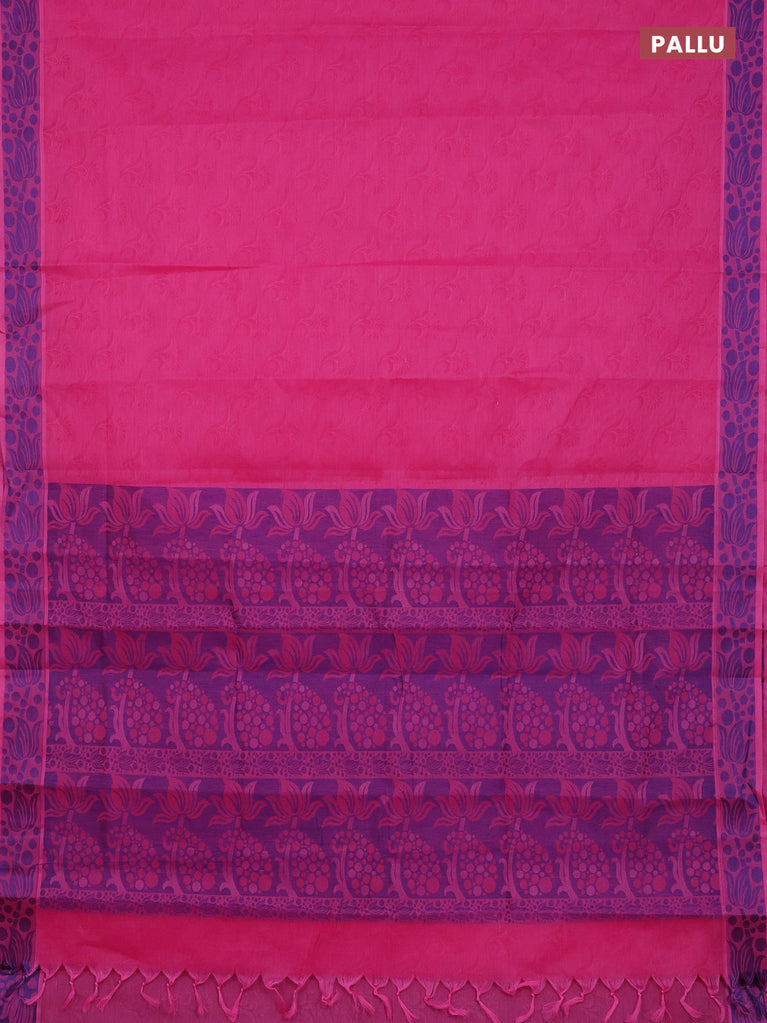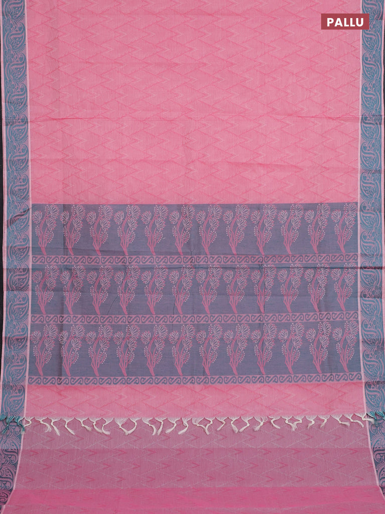 Coimbatore cotton saree pink and blue with allover self emboss and thread woven border