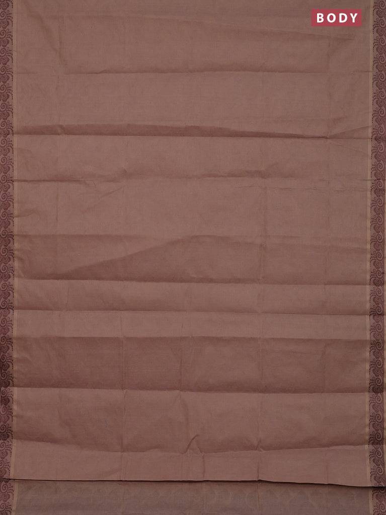 Coimbatore cotton saree pastel brown and coffee brown with allover self emboss and thread woven border