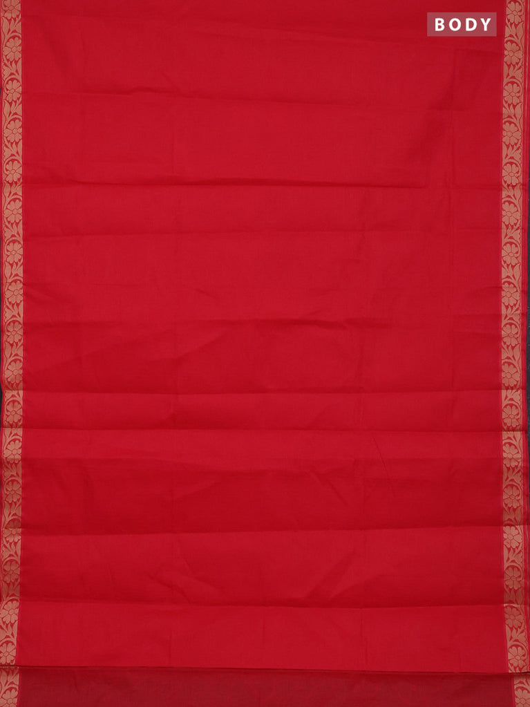 Coimbatore cotton saree peacock blue with allover self emboss and thread woven border