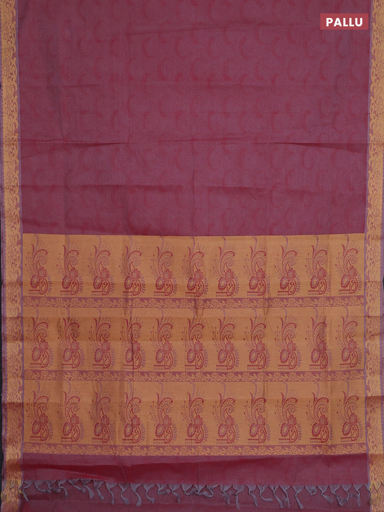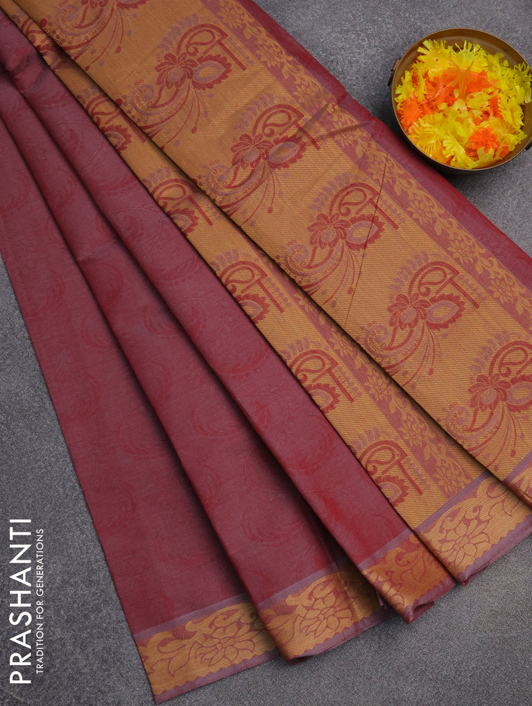 Coimbatore cotton saree pastel wine shade with allover self emboss and thread woven border
