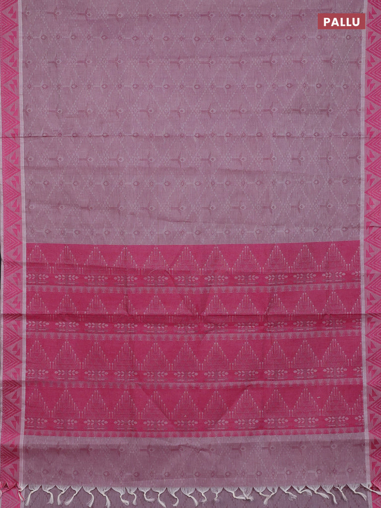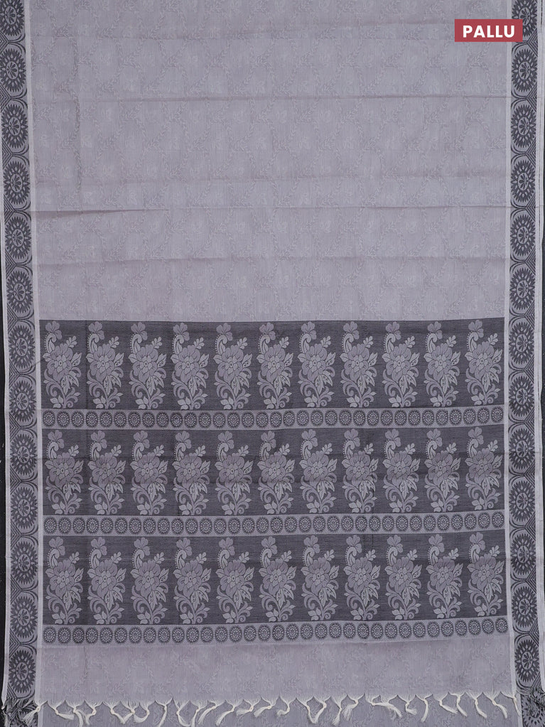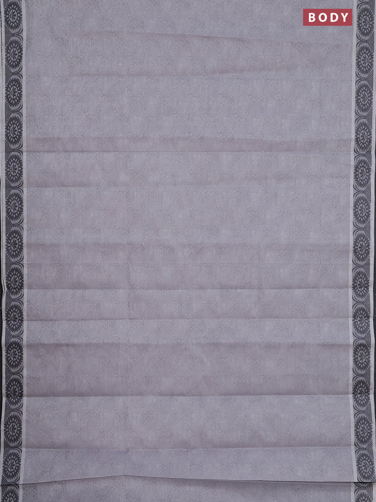 Coimbatore cotton saree pastel grey and black with allover self emboss and thread woven border