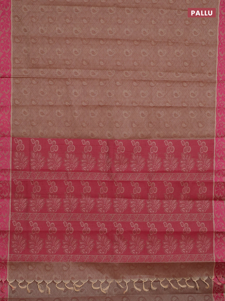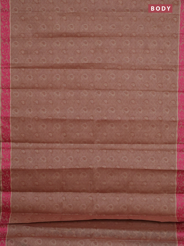 Coimbatore cotton saree pastel brown and pink with allover self emboss and thread woven border