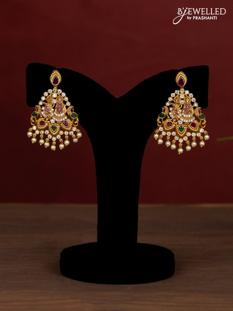Jaipur crystal beaded with cz and meenakari design and with earrings