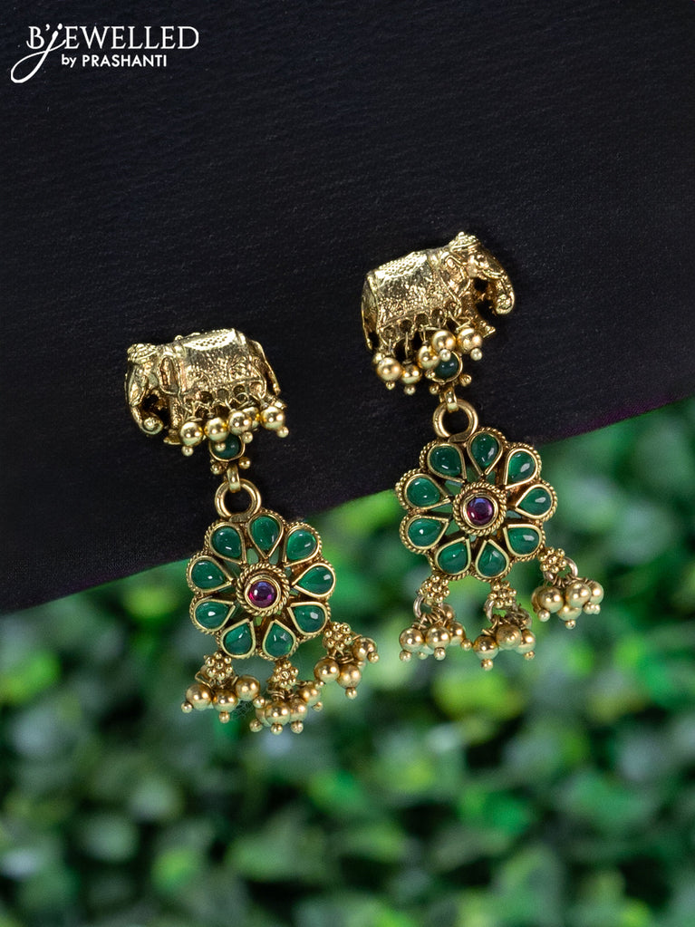 Antique necklace elephant design with jadau kundan stones and green beads hanging