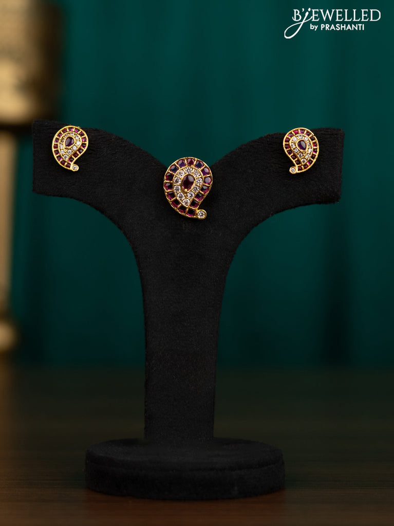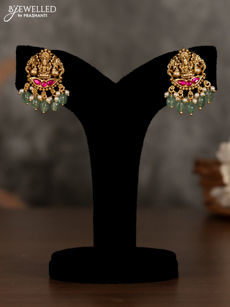 Antique pendant set tirupati balaji design with kemp & cz stones pearl & golden beads hanging