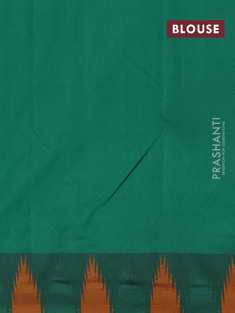 Arani semi silk saree blue and dual shade of green with copper zari woven buttas and copper zari woven butta border