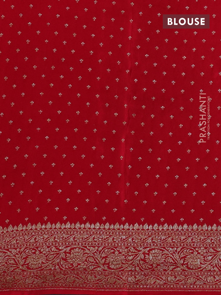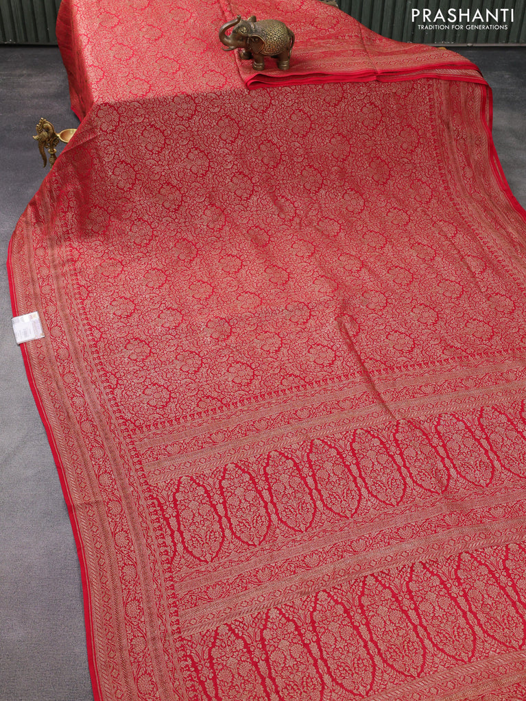 Banarasi crepe saree red with allover thread & zari weaves and woven border