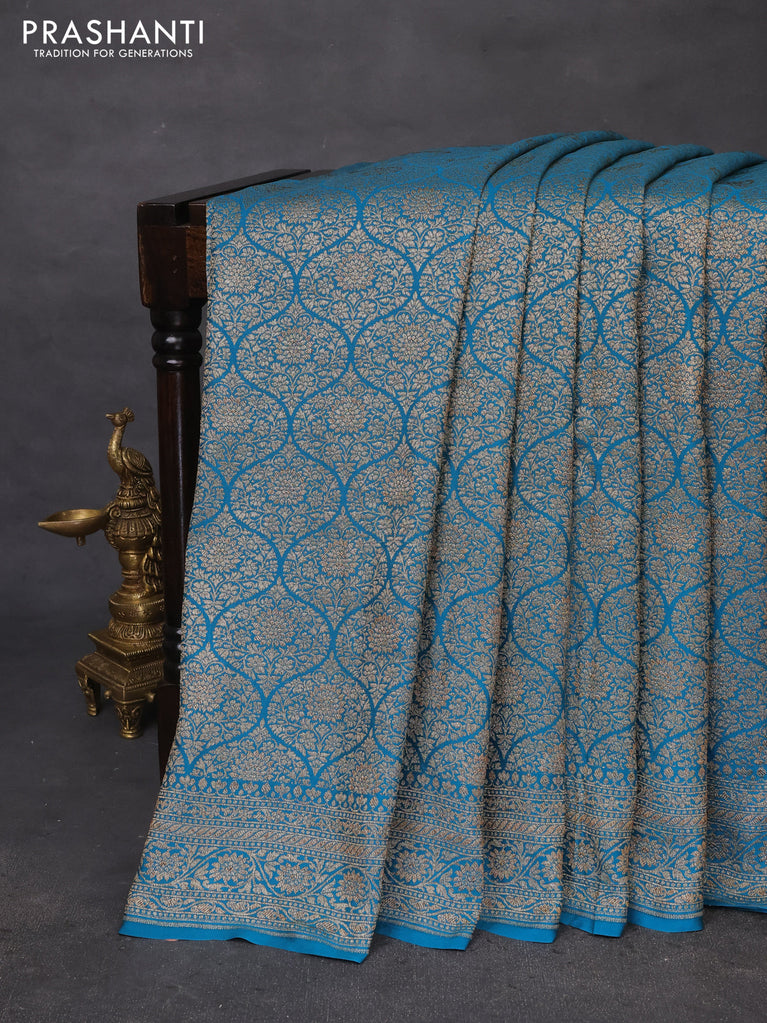 Banarasi crepe saree royal blue and cs blue with allover geometric zari weaves and woven border