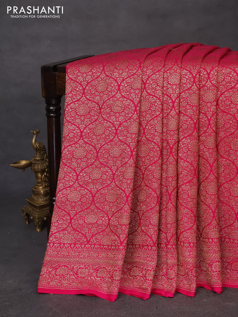 Banarasi crepe saree rani pink with allover thread & zari woven brocade weaves and woven border