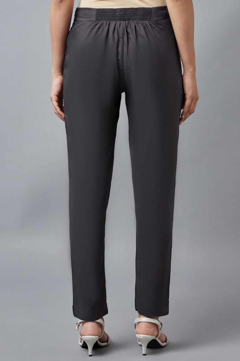 Grey Solid Straight Fit Trousers With Pintuck Detail