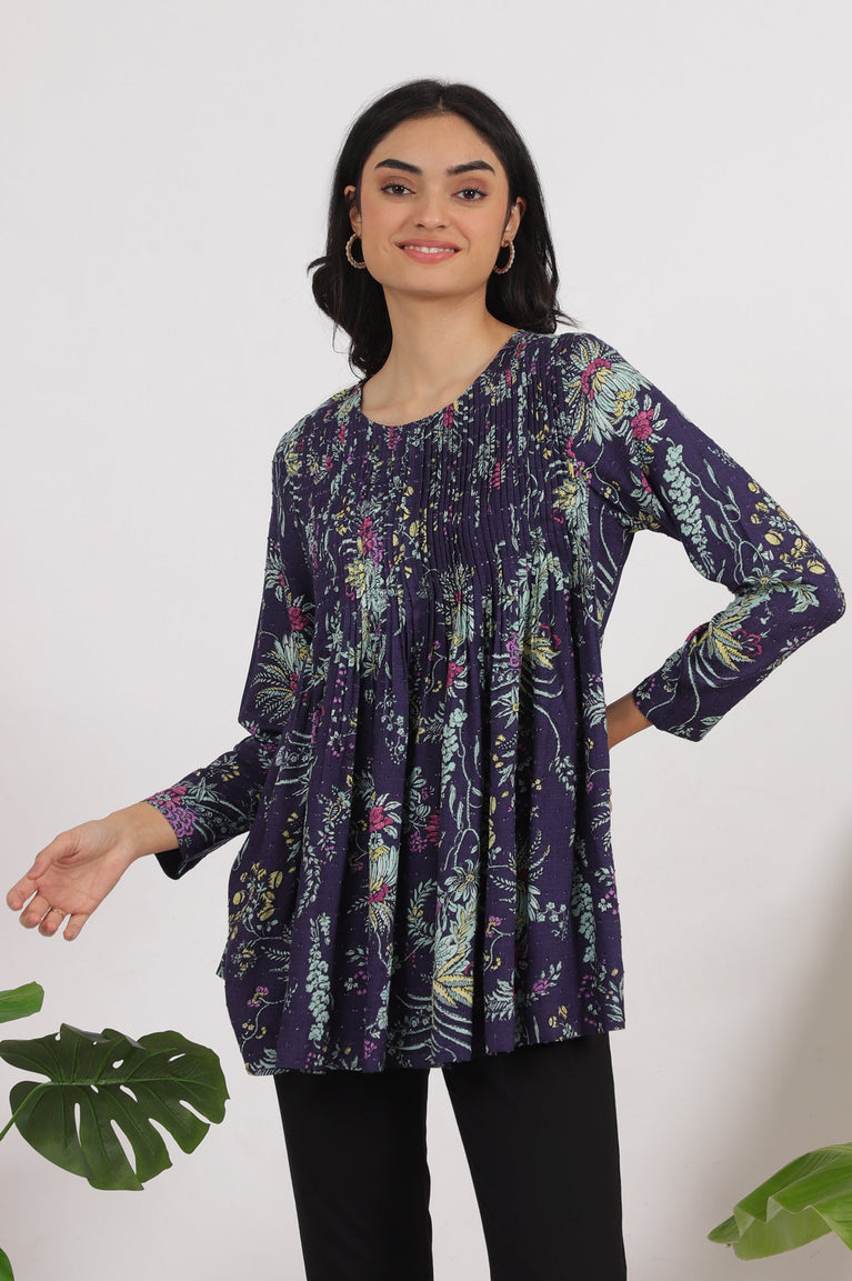 Embrace effortless elegance with this pleated A-line top, a perfect blend of texture and style. Crafted from soft, lightweight fabric, the top features a delicate Swiss dot pattern that adds a subtle yet sophisticated touch. The A-line silhouette offers a flattering, flowy fit that drapes beautifully, while the pleated detailing enhances its graceful movement. The soft grey hue, combined with the intricate print, makes this top a versatile addition to your wardrobe. Ideal for both casual and semi-formal occasions, it pairs seamlessly with jeans for a relaxed look or tailored pants for a polished ensemble. Comfortable and stylish, this top is a must-have for any modern wardrobe.