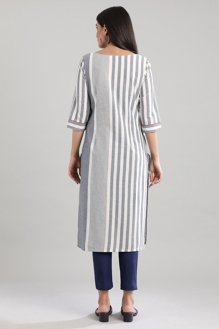 Blue Boat Neck Striped kurta