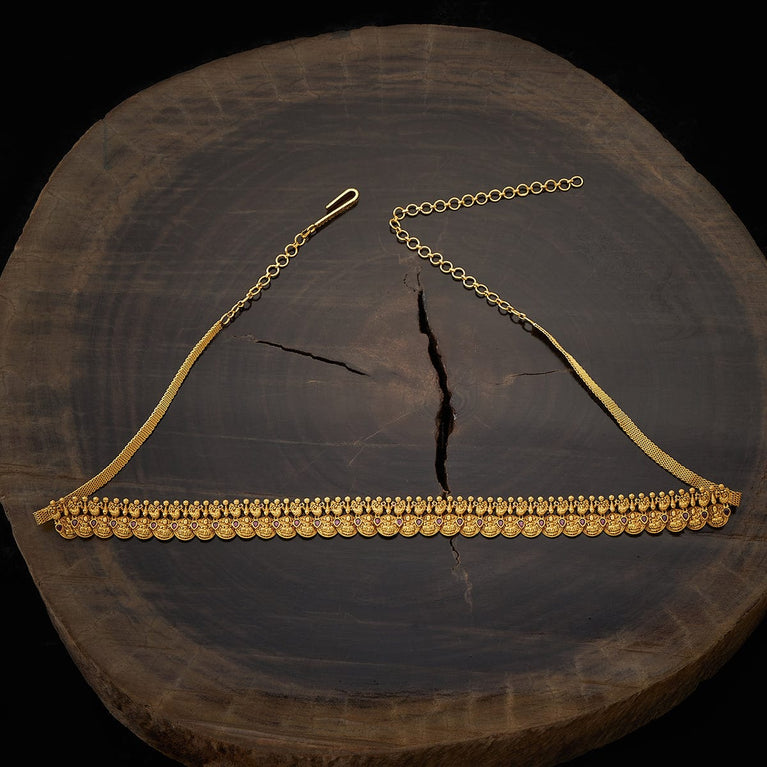 Kushal's Fashion Jewellery Flower Motif Antique BeltGet the confidence boost you wanted this wedding season with our latest antique belt. This adjustable belt will be the favourite accessory for all traditional outfits, thanks to its heavenly motifs studded with white stones and adorned with gold polish. All you have to do is wear this belt with a classic outfit and confidently keep your head high.