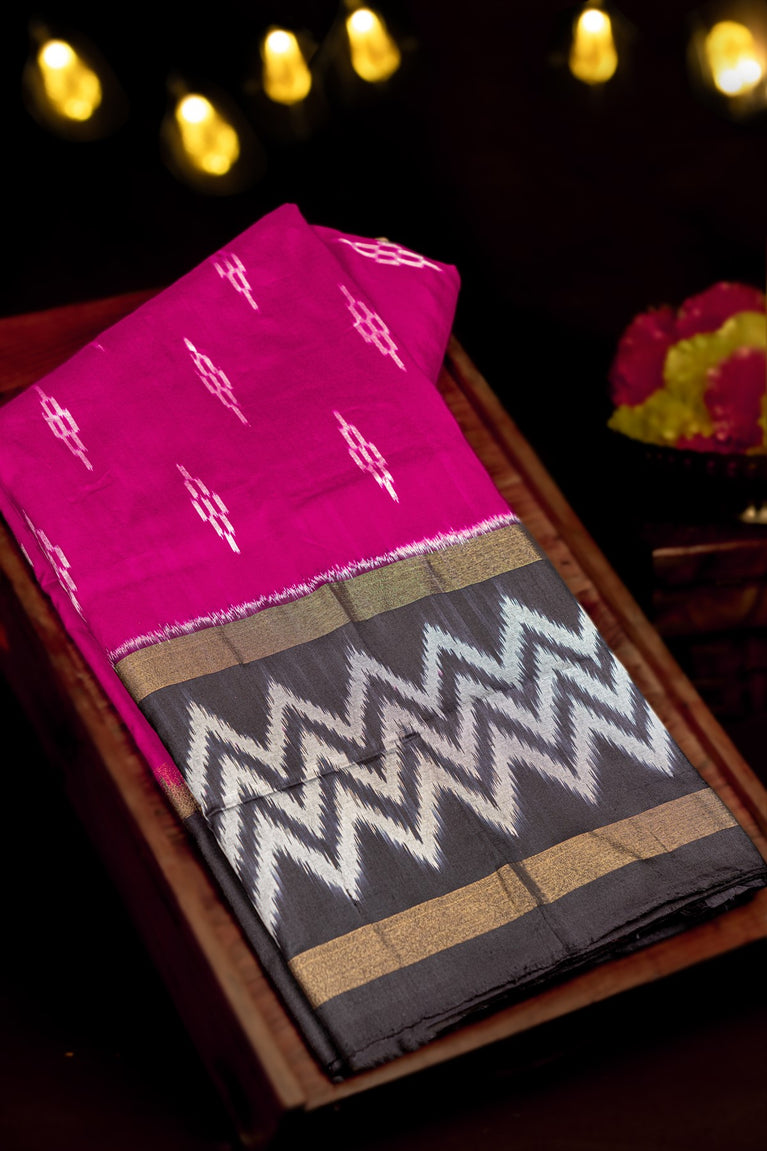 Varamahalakshmi Pink & Black Ikat Ikat Saree