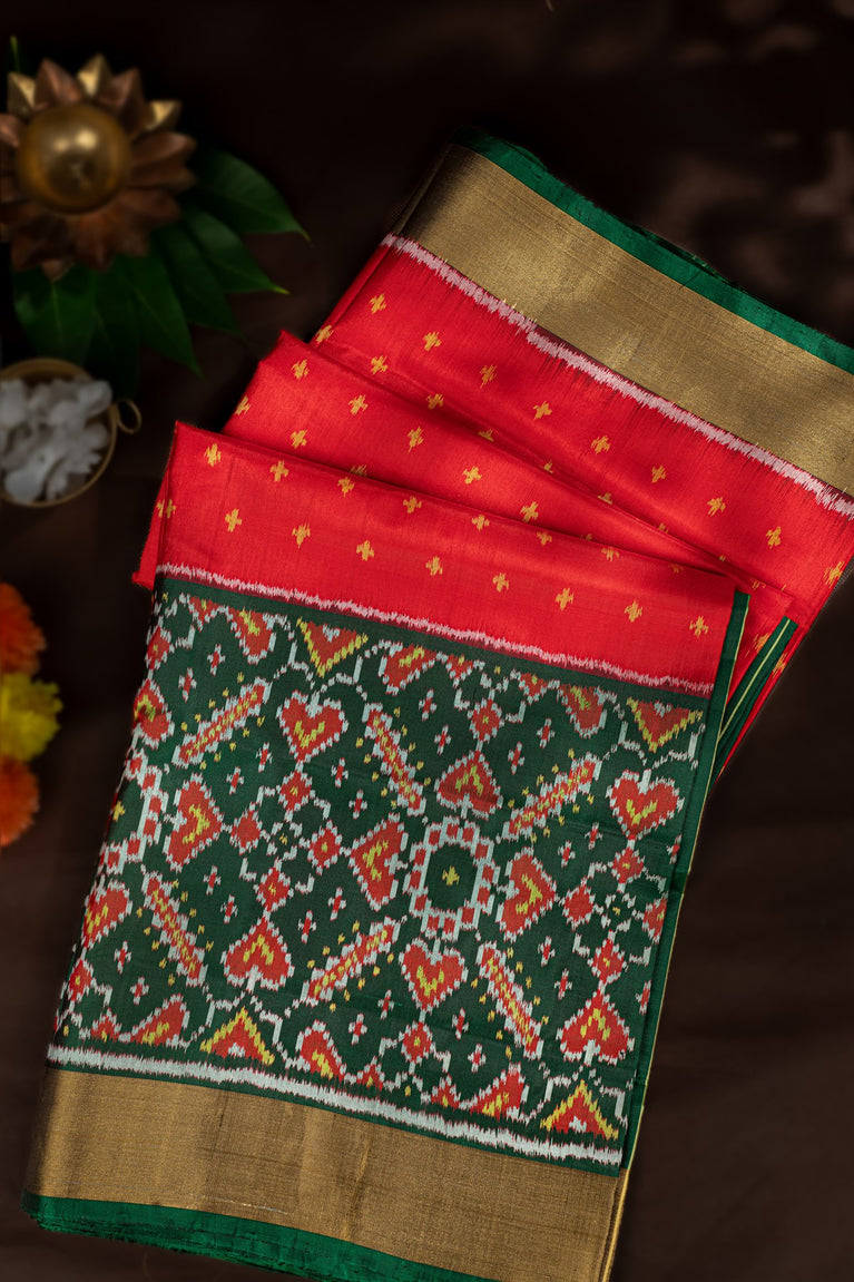 Varamahalakshmi Red & Green Patola Ikat Saree