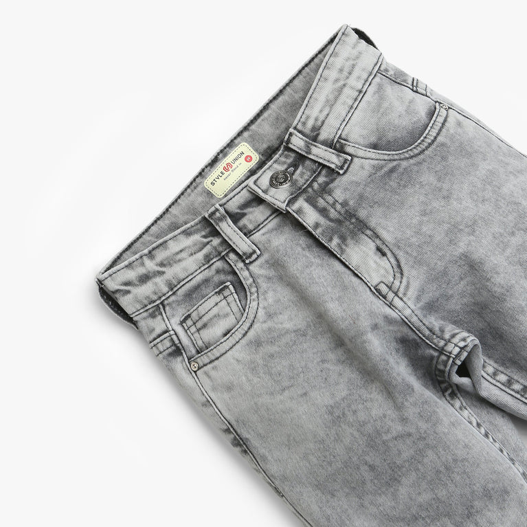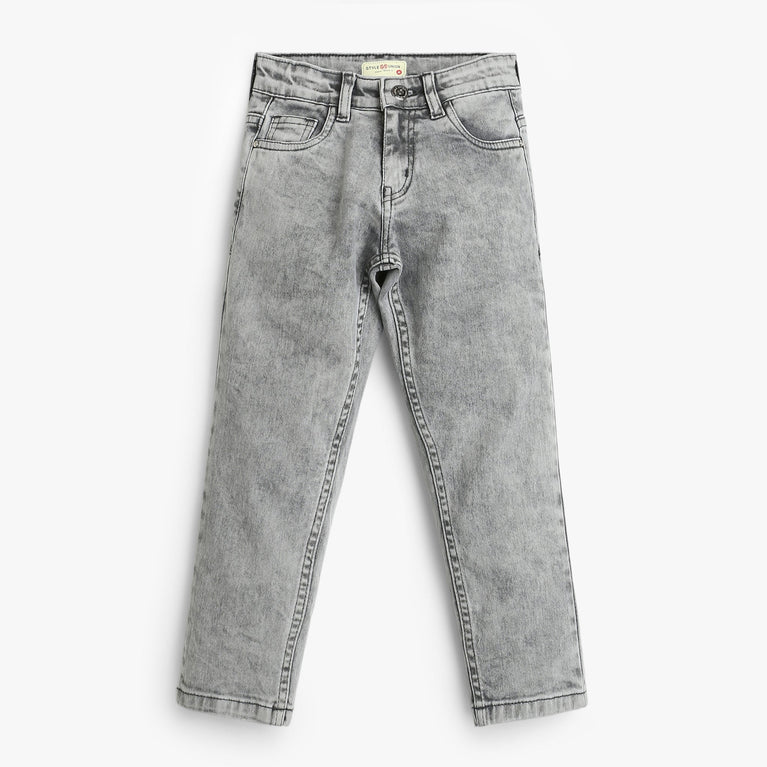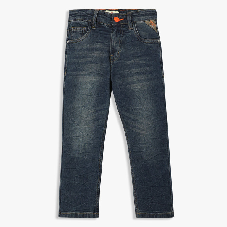 Boys Slim Fit Full Length Heavily Ball Washed Jeans