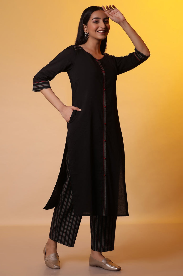 Black Yarn-Dyed kurta, Straight Palazzo and Dupatta Set