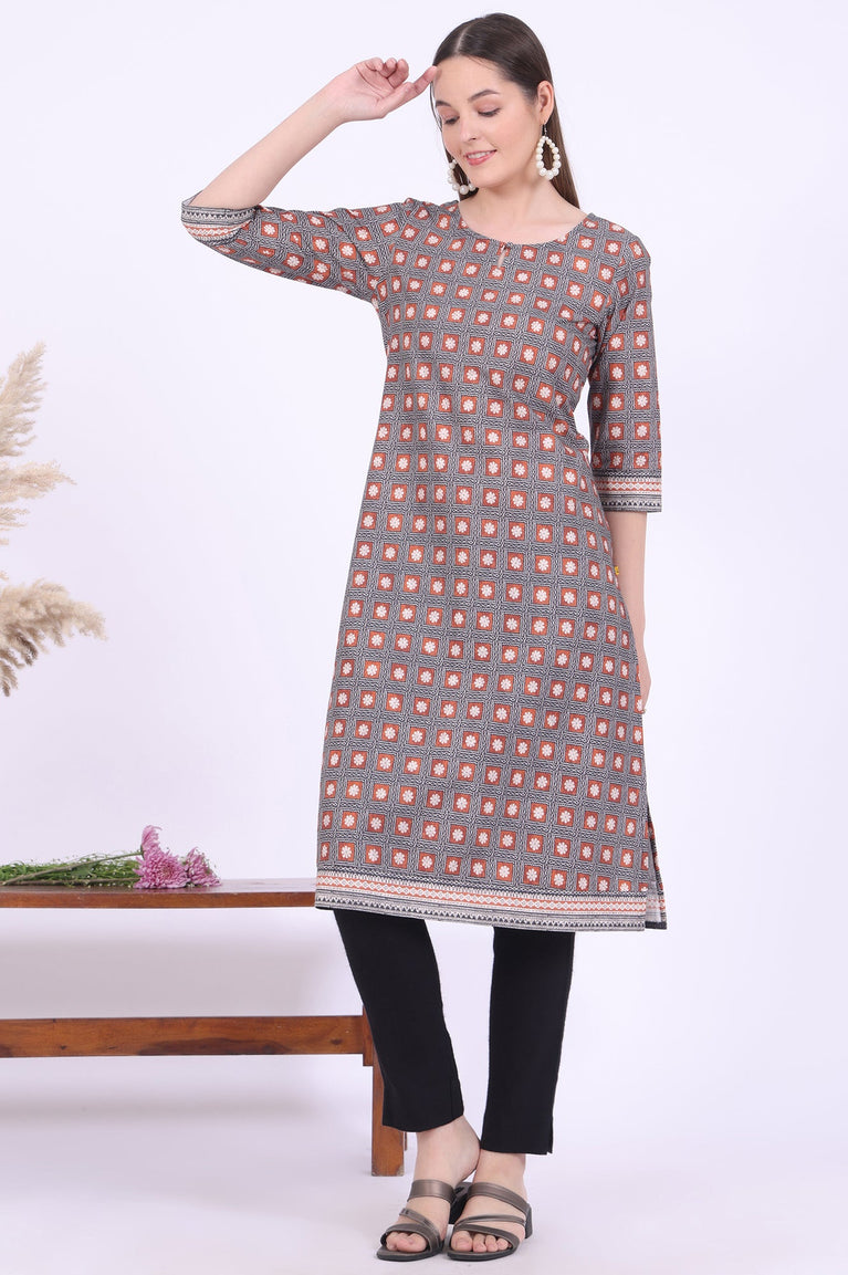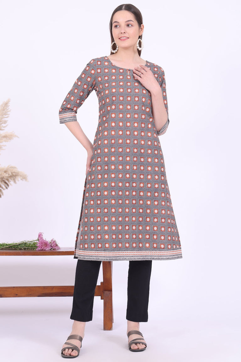 Camp Collar Knee Length Three-Fourth Sleeve Straight Fit Printed Kurta