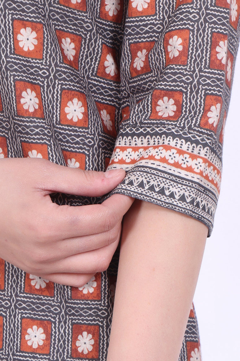Discover the perfect blend of comfort and style with this rust-colored mid-calf kurta from Aurelia. Crafted from 100% modal fabric, this women's casual wear piece offers a luxuriously soft feel against the skin. The keyhole neckline adds a touch of elegance, while the straight cut and three-quarter sleeves create a flattering silhouette. A subtle slit detail enhances both style and ease of movement. This woven kurta embodies fusion ethnicity, making it versatile for various occasions. The modal construction ensures breathability and durability, perfect for all-day wear. Aurelia's attention to detail is evident in every aspect of this kurta, from its carefully chosen color to its thoughtful design elements. Whether you're running errands or meeting friends for a casual outing, this kurta will keep you looking effortlessly chic and feeling comfortable throughout the day.