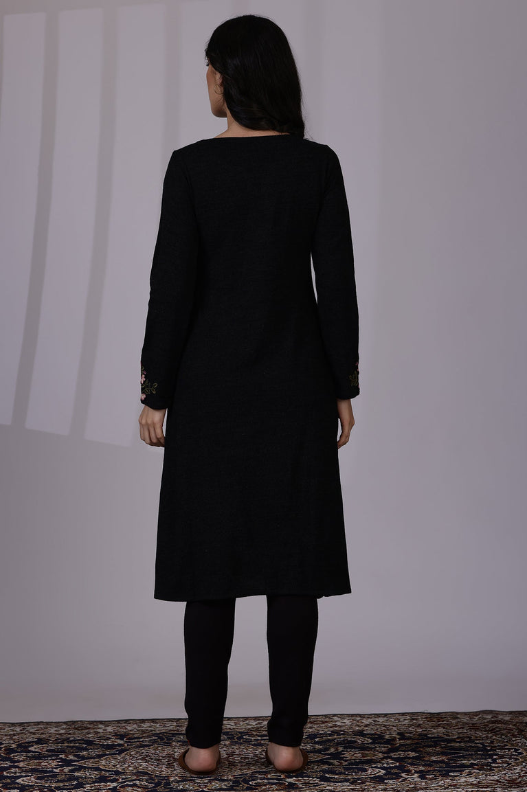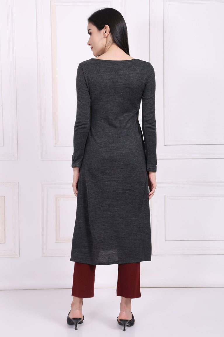 Grey Embroidered A-Line Acrylic Winter Kurta