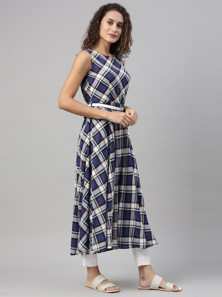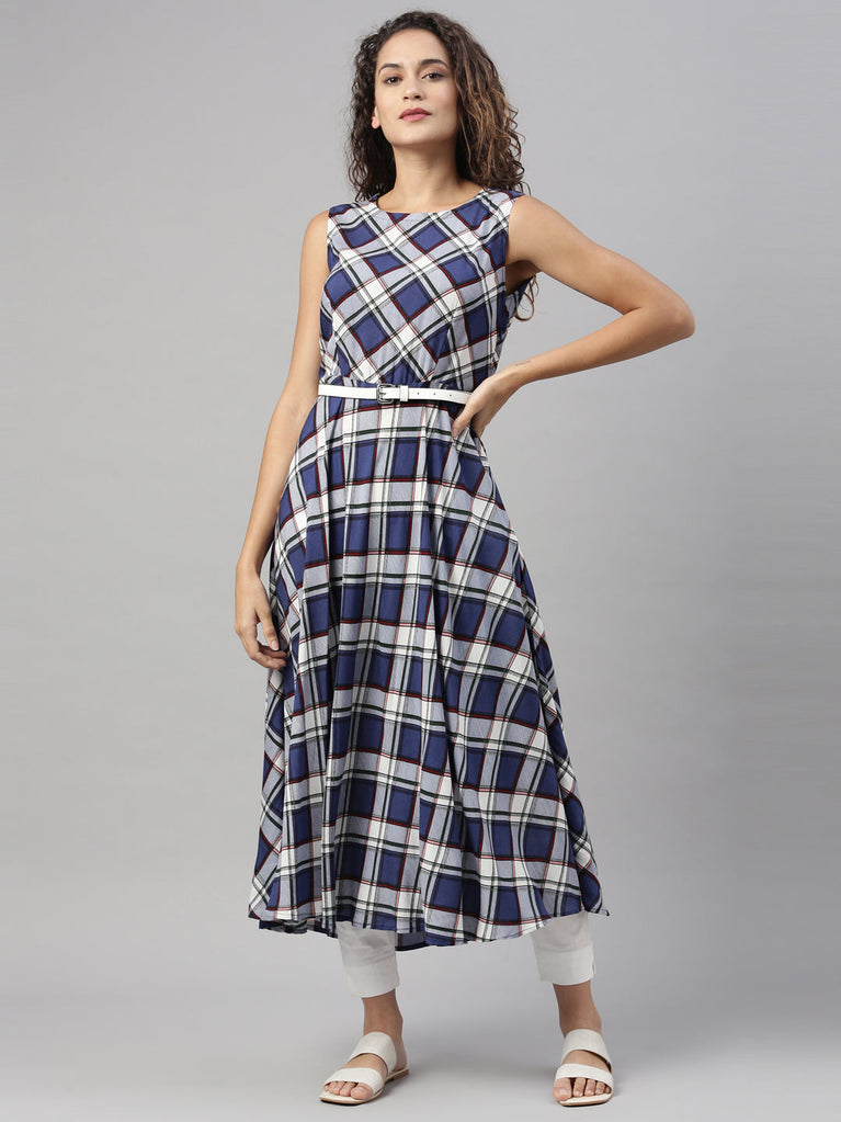 Neerus Blue Regular Straight Checked Kurtas "Get ready to rock your style with these kurtas that are perfect for any occasion! With a classic straight cut and a trendy checked pattern, you'll look effortlessly cool and chic (and never check-less)!"
