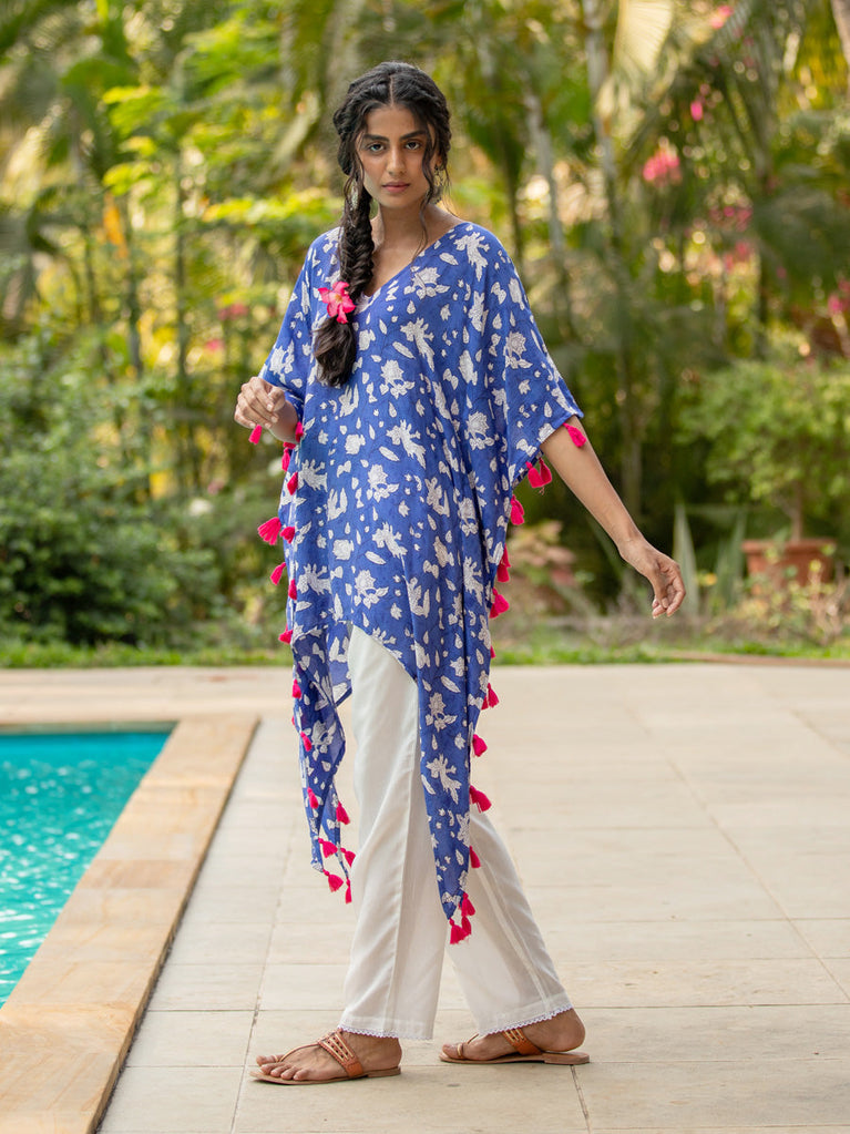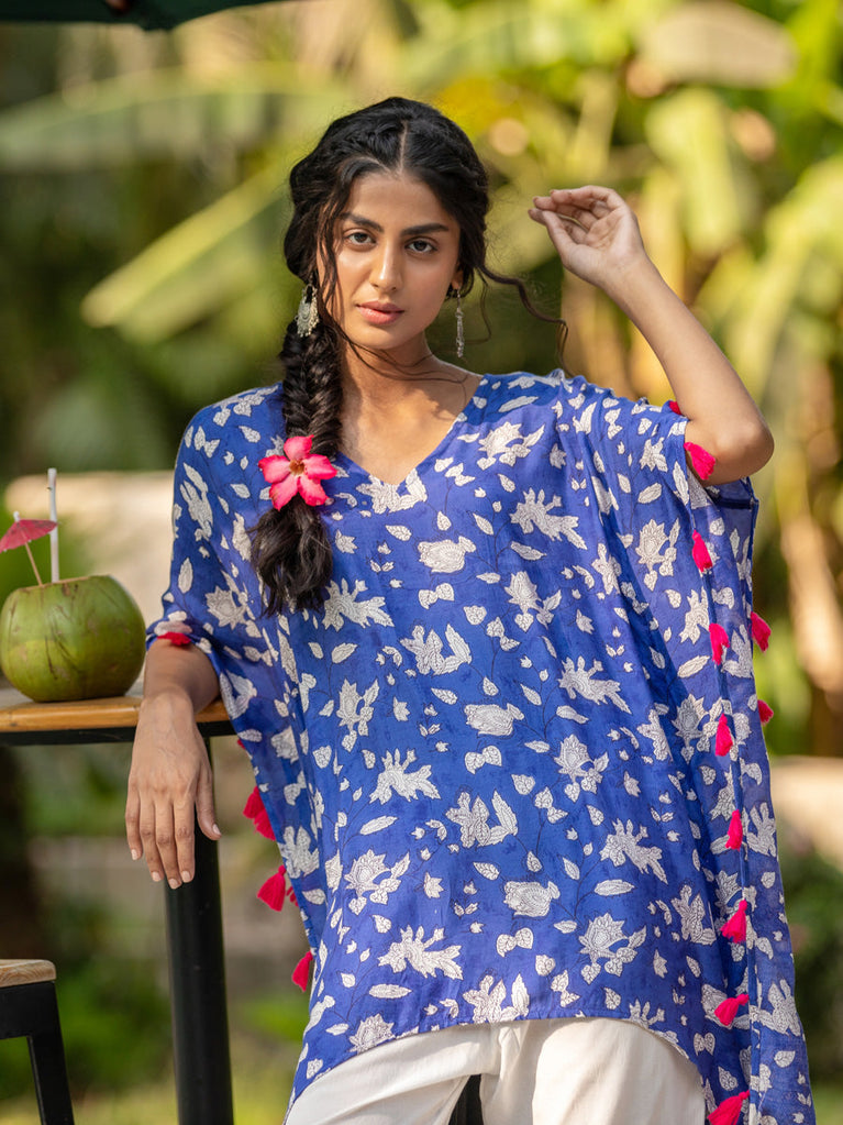 Set of 2 - Blue Lotus Block Printed Kurta and Lantern Pants