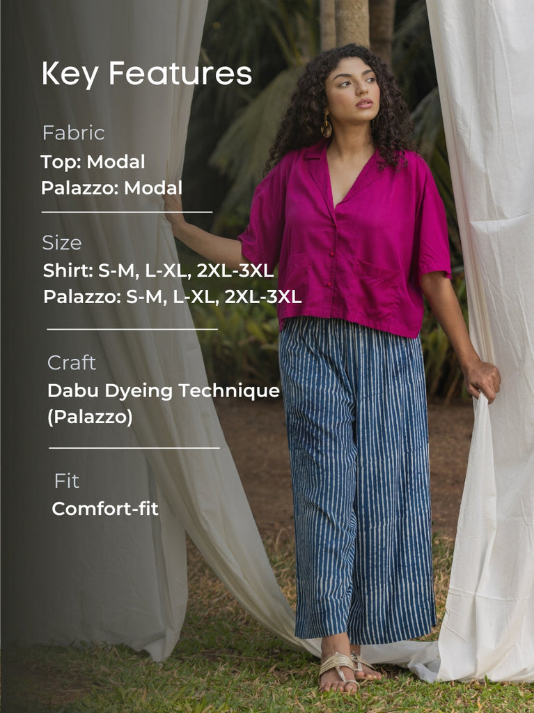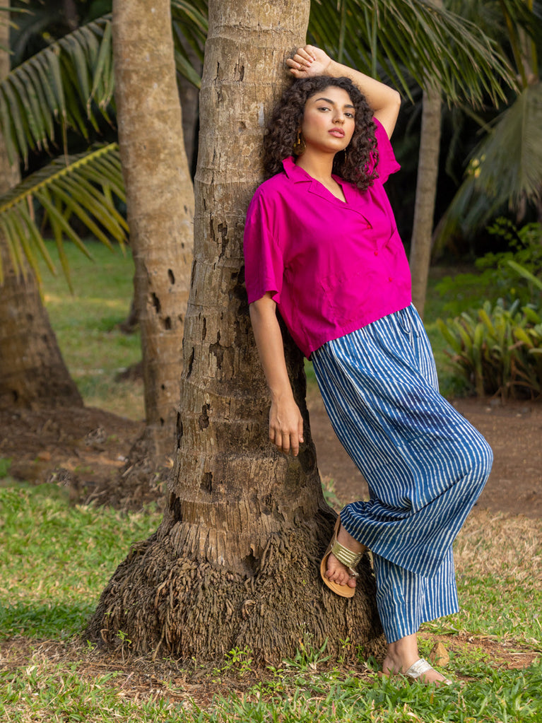 Set of 2 - Keya Indigo Cotton Tunic and Palazzo
