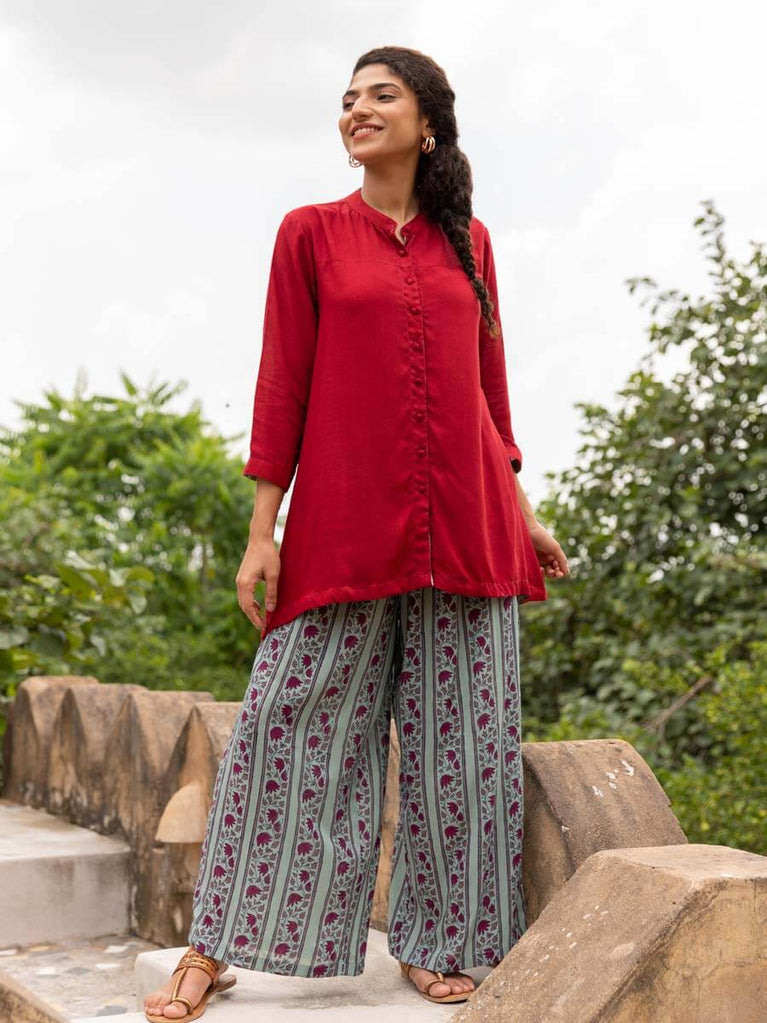 Set of 2 - Shayari Block Printed Kurta and Palazzo Pants