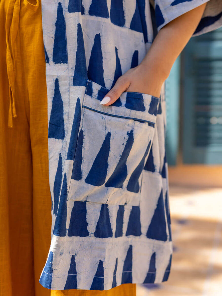 Set of 2 - Mimosa Indigo Dabu Kimono Jacket and Palazzo Pants