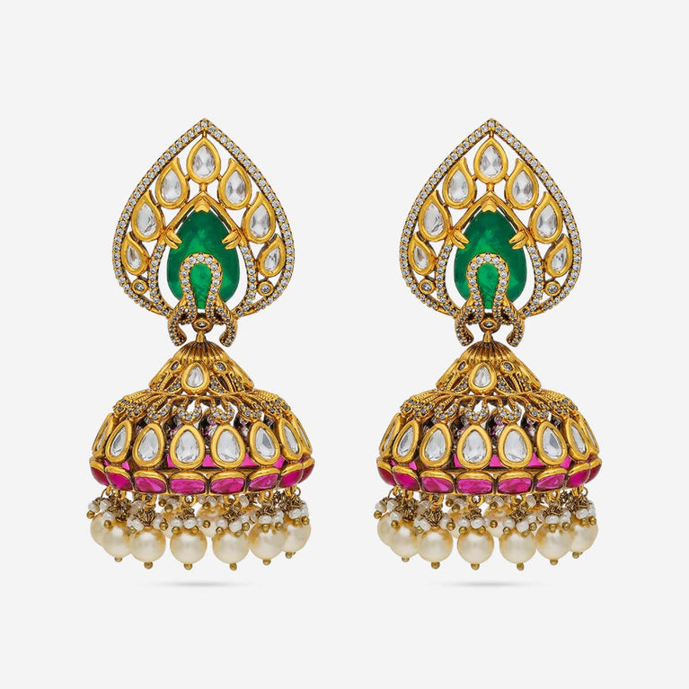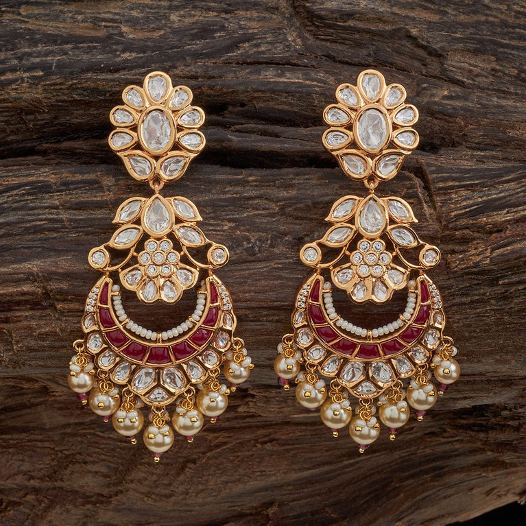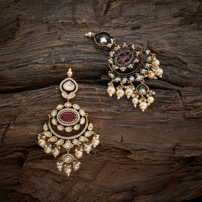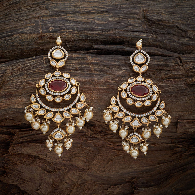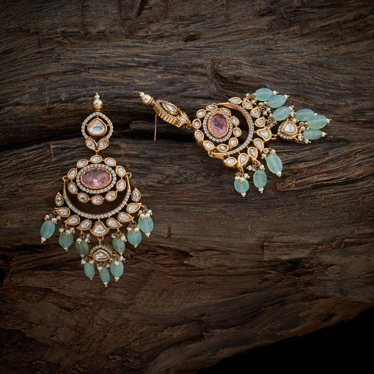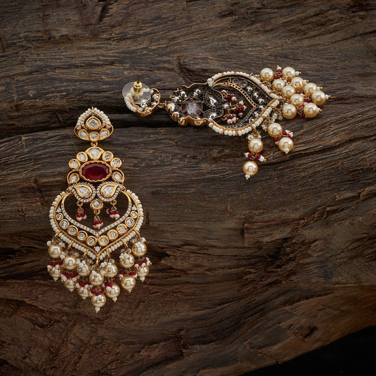 Kushal's Fashion Jewellery Paisley Design Kundan EarringAll types of polishes look splendid on Kundan stones, but Victorian polish gives it the finest look and our latest pair of Kundan earrings are here to give you that look. The Victorian polish on the Kundan stones paired with the green and ruby stones makes these hanging earrings one of the best accessories you can get this wedding season.