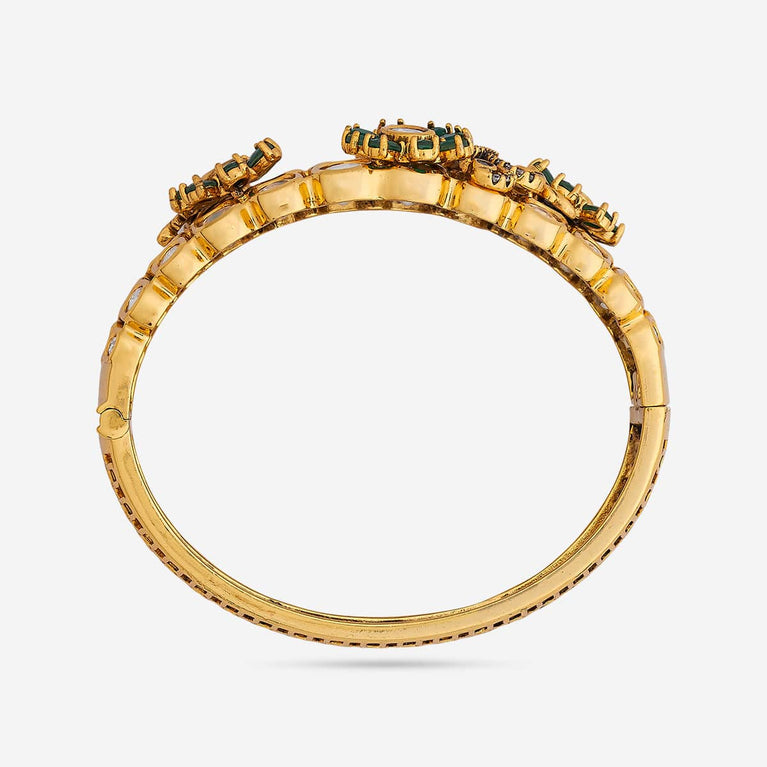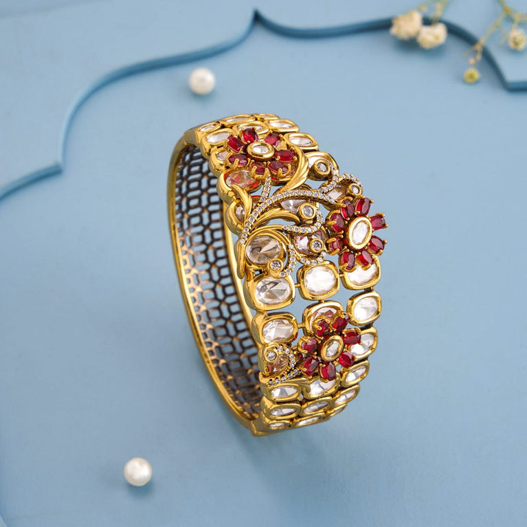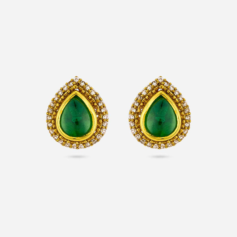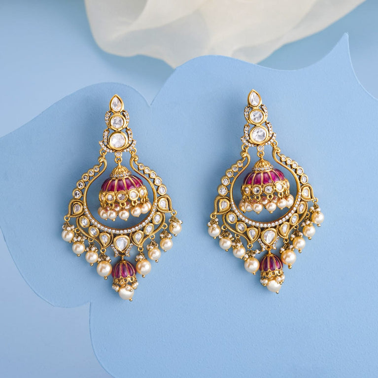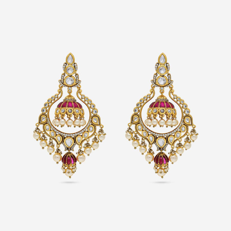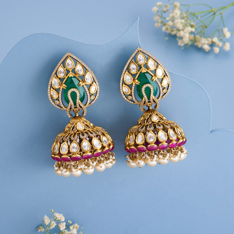 Kushal's Fashion Jewellery Paisley Design Kundan EarringAll types of polishes look splendid on Kundan stones, but Victorian polish gives it the finest look and our latest pair of Kundan earrings are here to give you that look. The Victorian polish on the Kundan stones paired with the green and ruby stones makes these hanging earrings one of the best accessories you can get this wedding season.