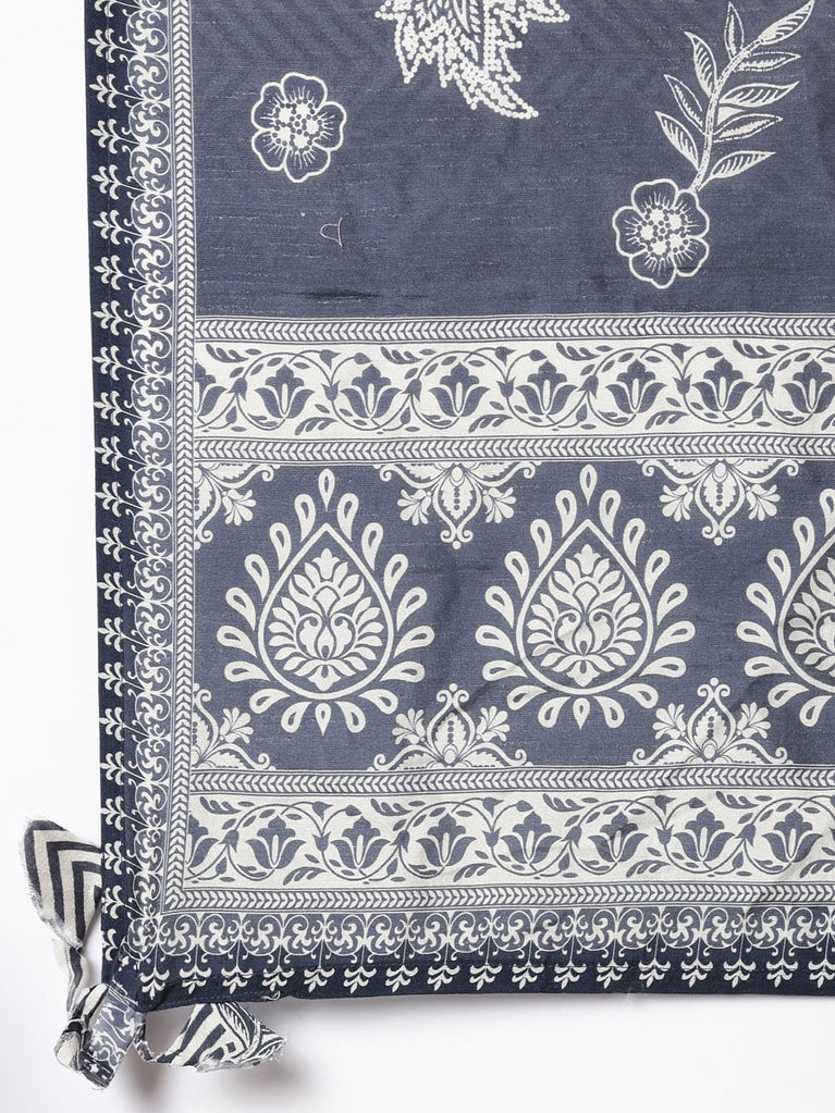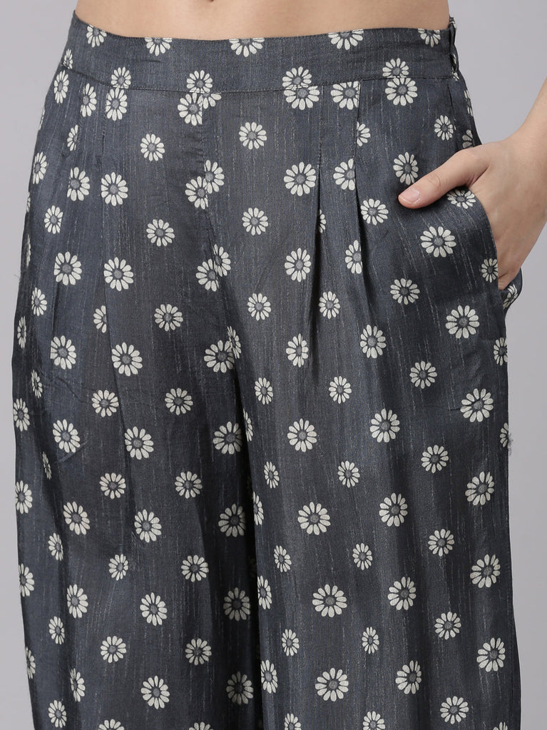 Elevate your wardrobe with this Gray Muslin Printed Three Piece Set, crafted from soft, breathable fabric for all-day comfort. Featuring subtle prints that add a refined touch, this set combines elegance with effortless style. Ideal for both casual and formal occasions, it offers versatile wear that seamlessly adapts to your day.