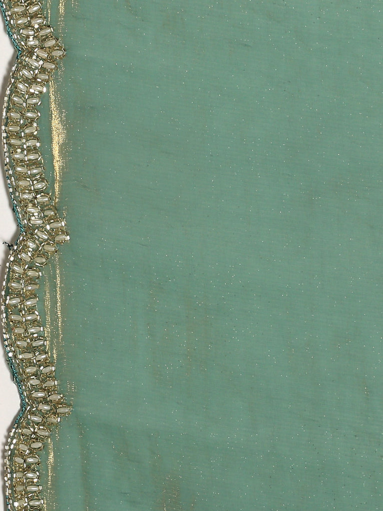 Green & gold Jimmy tissue saree with hand embroidery with ready made blouse
