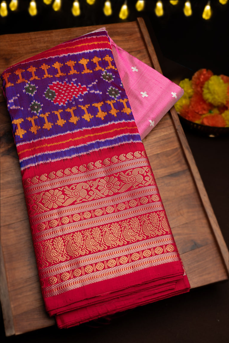 Mandir Blush Pink & Purple Kanchi Ikat Ikat Saree